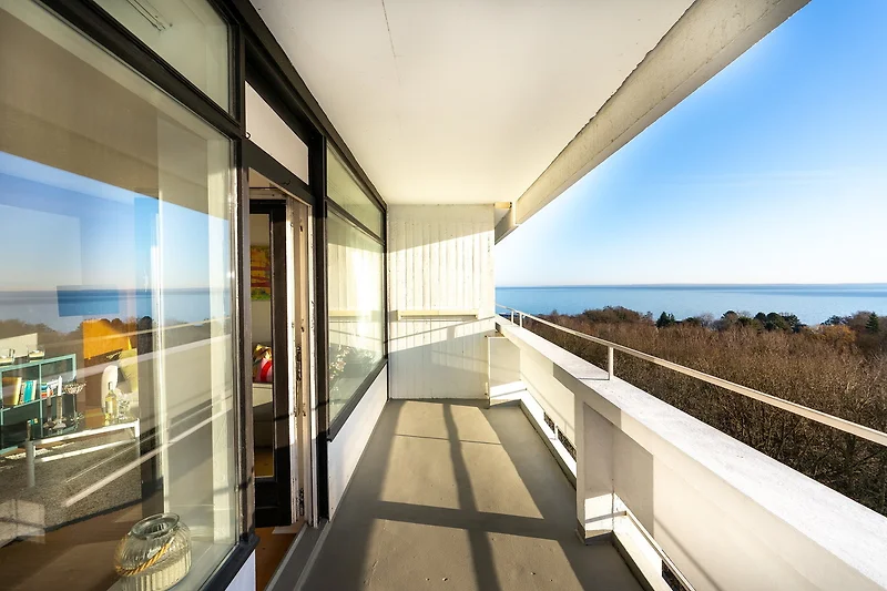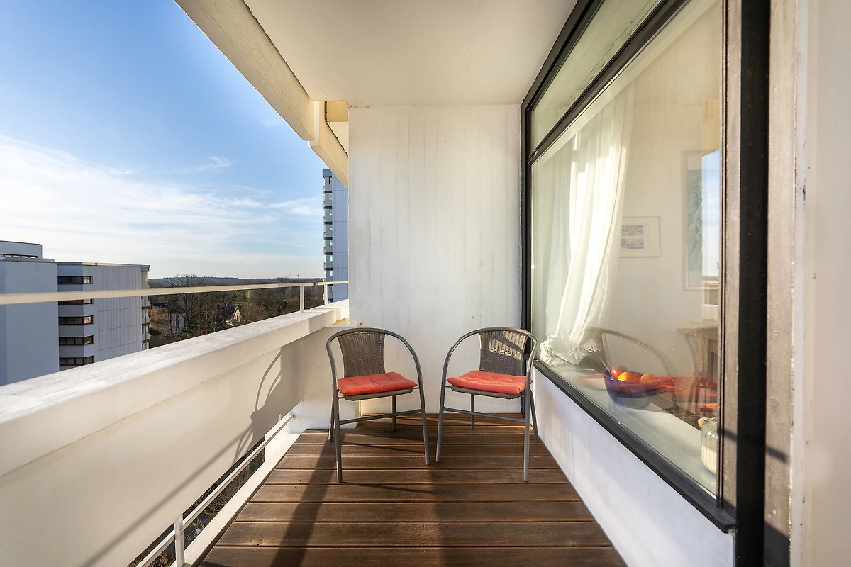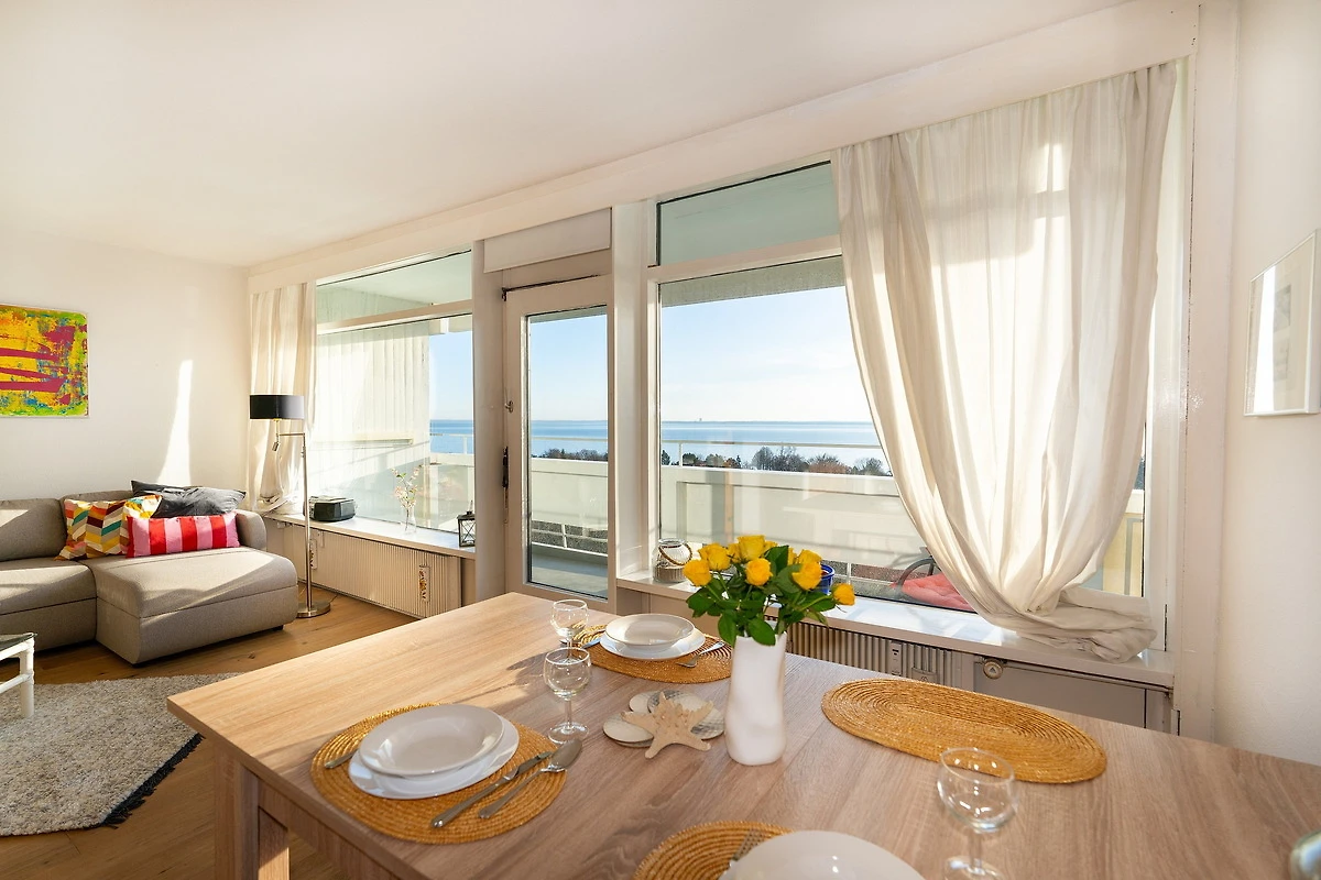 Die Captains Lounge in Sierksdorf bietet Ihnen auf 42 m² ein durchdachtes Ambiente für einen entspannten Aufenthalt an der Ostseeküste. In nur 500 Metern erreichen Sie sowohl das Meer als auch den feinsandigen Ostseestrand, sodass Sie jederzeit ausgedehnte Spaziergänge am Wasser oder ein erfrischendes Bad geniessen können. Die Unterkunft besticht durch einen aussergewöhnlich guten Meerblick, den Sie sowohl vom Innenraum als auch vom Balkon aus entspannt erleben können. Die grosszügige Studiosuite ist ein optimal geschnittener, offen gestalteter Wohnraum ohne separates Schlafzimmer, der dennoch zwei komfortable Schlafmöglichkeiten bietet. Entspannen Sie sich in der gemütlichen Sofaecke und lassen Sie den Blick durch grosse Fensterfronten bis zur Ostsee schweifen. Ein stilvoller Essbereich, moderne Garderobe und praktische Details wie ein Staubsauger oder Abfalleimer ergänzen den hohen Wohnkomfort. Im Wohnzimmer sorgt ein kleines TV-Gerät für Unterhaltung in ruhigen Stunden. Die Küche ist offen zum Wohnbereich gestaltet und mit zahlreichen Annehmlichkeiten wie Backofen (Elektroanschluss), 4-Platten-Herd, Kühlschrank mit Gefrierfach, Kaffeemaschine, Wasserkocher sowie ausreichend Küchenutensilien, Geschirr und Besteck ausgestattet. Dies ermöglicht Ihnen die unkomplizierte Zubereitung eigener Mahlzeiten. Der Esstisch bietet einen schönen Platz für gemeinsame Mahlzeiten mit direktem Ostseeblick. Das Badezimmer verfügt über ein modernes Waschbecken, Spiegel und einer Dusche. Für längere Aufenthalte stehen Ihnen zudem gemeinschaftlich nutzbare Waschmaschine und Trockner zur Verfügung. Die Wohnung befindet sich im 7. Stock und ist via Aufzug zu erreichen. Für Ihr Fahrzeug steht ein Privatparkplatz in der Tiefgarage vor dem Haus zur Verfügung. In der unmittelbaren Umgebung haben Sie zahlreiche Freizeitmöglichkeiten: Von Aktivitäten wie Beachvolleyball, Bowlen, Fitness-Training und Joggen bis hin zu Angeln, Minigolf, Tennis oder Radtouren. In der Nähe befinden sich zudem ein Freizeitpark und mehrere Spielplätze, sodass auch für Abwechslung und Unterhaltung gesorgt ist. Auch Fans von Pilates und Yoga finden im Umfeld Angebote. Das Schwimmbad im Nebengebäude mit einem 25-Meter-Becken können Sie gegen eine Gebühr nutzen. Der beliebte Freizeitpark Hansa-Park ist in wenigen Minuten fussläufig erreichbar – und dennoch hört man ihn nicht, denn das Apartment liegt auf der abgewandten Seite der Anlage. Sie finden Einkaufsmöglichkeiten in etwa 3 Kilometer Entfernung, Restaurants sind in ca. 600 Metern bequem erreichbar. Der Bahnhof und der nächste Anschluss an den öffentlichen Nahverkehr sind jeweils nur rund 500 Meter entfernt, sodass auch eine Anreise ohne Auto problemlos möglich ist. Es handelt sich um eine Nichtraucherwohnung – wir bitten um Ihr Verständnis. Die Captains Lounge vereint modernen Komfort und eine hervorragende Lage mit einem besonderem, maritimen Flair. Sie eignet sich ideal für Paare oder Einzelreisende, die Wert auf eine gepflegte Unterkunft mit aussergewöhnlichem Meerblick und direkter Strandnähe legen. Sichern Sie sich Ihren Aufenthalt und erleben Sie entspannte Tage an der Ostseeküste.