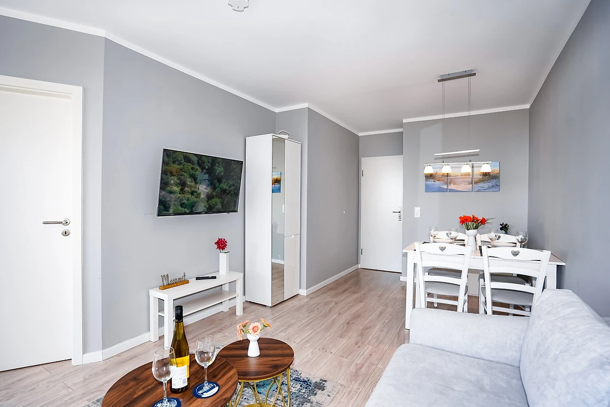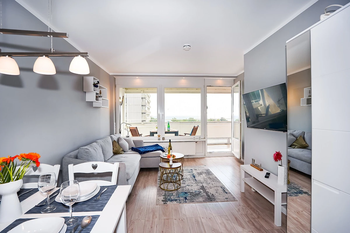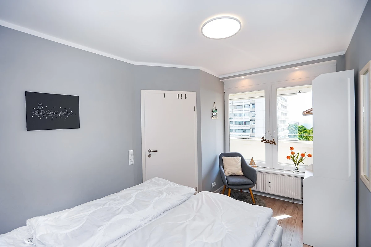 Die mit einem Fahrstuhl erreichbare Ferienwohnung Dünenlicht befindet sich in der 5. Etage der Panoramic Ferienanlage Sierksdorf. Das gepflegte und ruhig gelegene Apartment hat eine Grösse von etwa 40 Quadratmetern und bietet bis zu 4 Urlaubsgästen Platz. Der Wohnraum verfügt über einen Essbereich sowie über eine bequeme Polsterlandschaft, von der aus die Lieblingsserie auf einem grossen Flachbildfernseher verfolgt werden. Das helle Schlafzimmer ist mit einem bequemen Doppelbett (2 x 80 x200) ausgestattet. Die moderne Küche gibt Gelegenheit, eigene Mahlzeiten zuzubereiten. Das Badezimmer ist mit einer Dusche ausgestattet. Der mit wetterfesten Gartenmöbeln versehene Balkon bietet neben der Möglichkeit im Freien zu Frühstücken auch eine Aussicht auf die Lübecker Bucht. Eine Balkonverglasung lädt auch im Winter zum verweilen auf dem Balkon ein. Haustiere sind in dieser Ferienwohnung leider nicht gestattet. Während des Aufenthalts steht eine Schwimmhalle im Nebengebäude gegen ein geringes Entgelt zur Verfügung. Als Bonus zu der Zigarettenpause dürfen Raucher die traumhafte Aussicht vom Balkon aus geniessen, denn Rauchen ist in der Wohnung nicht erwünscht.
