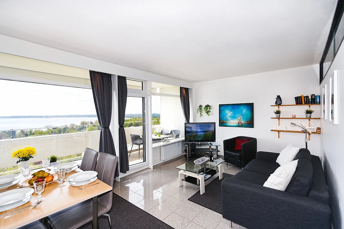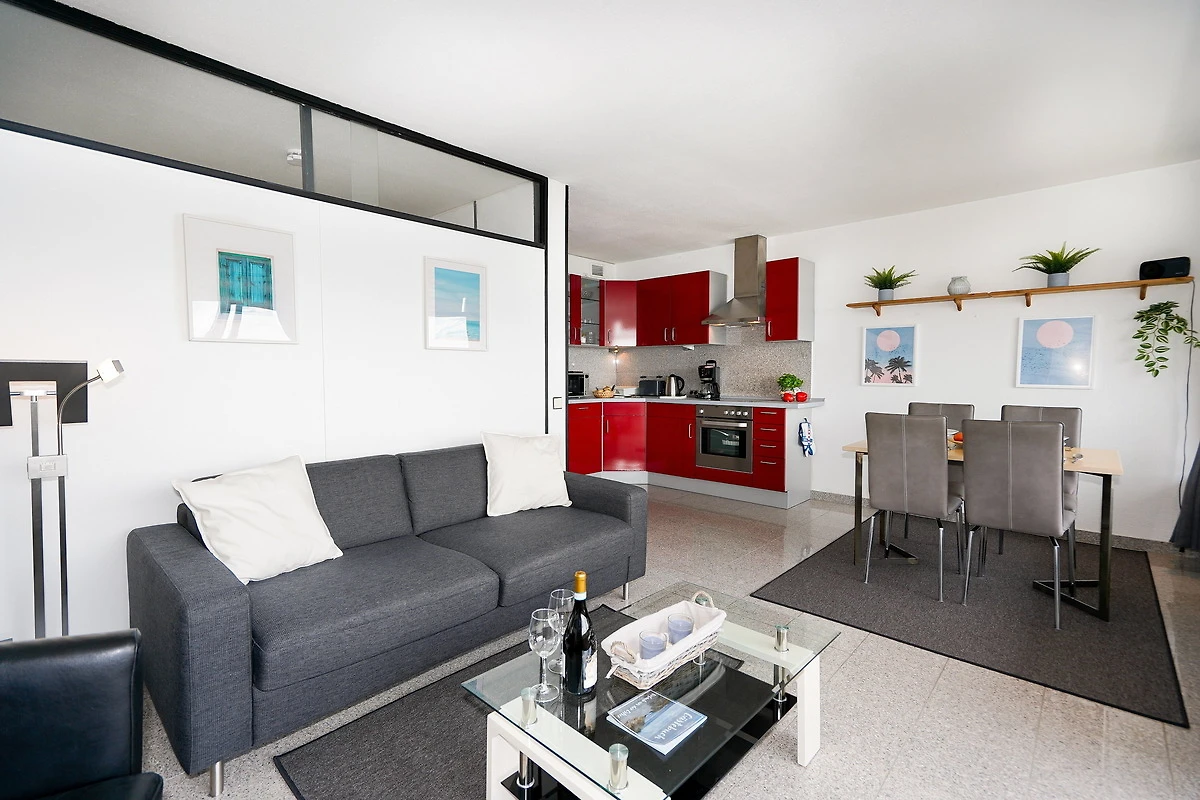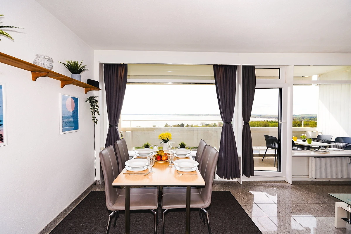 Mit Traumblick über die Ostsee den Urlaub bei einem Kaffee oder Gläschen Rotwein geniessen, ein schöne Vorstellung. Ausgiebige Spaziergänge am feinsandigen Strand, auf dem Balkon die Sonne geniessen oder in der nahe gelegenen Strandbar den Abend ausklingen lassen und dem Wellenrauschen zuhören. Nur 500 Meter trennen Sie von der Ostsee, der Blick ist bereits da. Das behaglich eingerichtete und etwa 40 m² grosse Apartment befindet sich in der 12. Etage in der Panoramic-Anlage, direkt neben dem Hansapark. Die kürzlich modernisierte Wohnung verfügt über ein Schlafzimmer mit Doppelbett und ein ausziehbares Schlafsofa, eine moderne, offene Küche mit grosszügigem Essbereich sowie ein modernes Badezimmer mit Dusche. Gourmets und Feinschmeckern bietet die praktische und voll ausgestattete Einbauküche Gelegenheit, auch leckere Gerichte zuzubereiten. Der Balkon mit Traumblick über die Lübecker Bucht ist mit wetterfesten Möbeln eingerichtet. Ein grosser Flachbildfernseher gehört ebenfalls zur Einrichtung der Ferienwohnung. Bettwäsche und Handtücher bringen Sie bitte selbst mit oder buchen diese bequem gegen Aufpreise hinzu. Haustiere sind in der Wohnung nicht erlaubt. Für das Auto steht ein privater Stellplatz bereit. W-Lan steht in dieser Wohnung ebenfalls zur Verfügung. In der Anlage können Sie das Schwimmbad mit einem 25-Meter-Becken gegen Gebühr nutzen. Auf dem Gelände befindet sich eine Grünanlage mit Tischtennisplatten, Tennis- (gegen Gebühr), Basketball-, und Boccia-Platz zur gemeinschaftlichen Nutzung.
