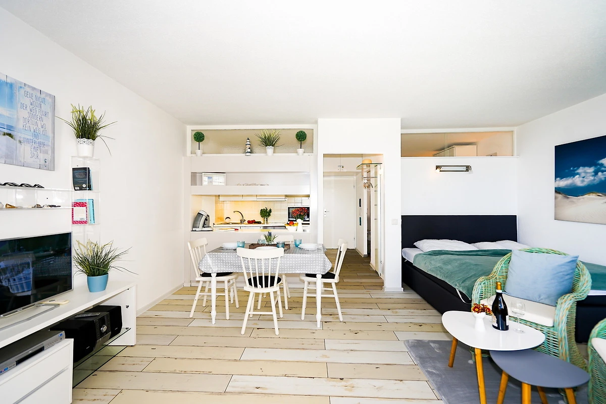 Die ruhige und 40 Quadratmeter grosse Ferienwohnung bietet Platz für 2 bis 4 Urlaubsgäste. Über einen Fahrstuhl kann die in der 4. Etage gelegene Wohnung bequem erreicht werden. In dem hellen und gemütlich eingerichteten Wohnzimmer ist eine moderne Küche integriert. Diese enthält neben allen Kochutensilien auch eine komfortable Spülmaschine. Eine Essecke, eine bequeme Schlafcouch sowie ein grosser Flachbildfernseher befinden sich ebenfalls im Wohnraum. Das Schlafzimmer ist mit zwei Einzelbetten eingerichtet. Das Badezimmer verfügt über eine Dusche. Von dem mit wetterfesten Möbeln ausgestatteten Balkon eröffnet sich eine Aussicht auf das Meer in Richtung der Ortschaft Pelzerhaken. Bis zum Ostseestrand sind es nur 3 Gehminuten. Haustiere sind in der Wohnung herzlich willkommen. Die nähere Umgebung bietet reichlich Auslauf für die Vierbeiner und daher beste Bedingungen für einen Urlaub mit Hund. Für das Auto steht ein Aussenstellplatz bereit. Da Rauchen in der Ferienwohnung nicht erwünscht ist, wird gebeten, Zigaretten nur auf dem Balkon mit Traumblick auf die Ostsee zu rauchen. LAGE Die im Ferienpark Sierksdorf liegende Wohnung befindet sich direkt am Strand. Auf dem Weg bis zum 100 Meter entfernten Ostseestrand muss keine störende Strasse überquert werden. Der Urlaub mit Hund wird ebenfalls zu einem Erlebnis am nahegelegenen Hundestrand. Dort dürfen sich die Vierbeiner ohne Leinenzwang austoben. Um die benötigten Utensilien für ein morgendliches Frühstück auf der Terrasse zu besorgen, genügt ein kurzer Spaziergang zum Kiosk des Ferienparks. Weitere Einkaufsmöglichkeiten und Supermärkte liegen etwa 3 Kilometer entfernt. Für einen abwechslungsreichen Urlaub an der Ostsee sorgen die zahlreichen Attraktionen in der Umgebung. Ein Sportflugplatz mit Rundflugangebot, Schwimmbäder, Restaurants mit einem vielfältigen Angebot an fangfrischem Fisch sind nur einige Möglichkeiten, den Ostseeurlaub erlebnisreich zu gestalten. Nahegelegene Sport- und Freizeitmöglichkeiten bereichern die Ferientage auf vielfältige Weise. Ob Bowling, Tennis, Wandern, Segeln oder Rundflüge über die Lübecker-Bucht, der erlebnisreichen Gestaltung des Ostseeurlaubs sind kaum Grenzen gesetzt. Zu den grössten Attraktionen gehört der Hansapark, ein familienorientierter Freizeitpark, der weit über die Grenzen der Region bekannt ist und nur wenige Gehminuten entfernt liegt. Zahlreiche Restaurants für den Hunger zwischendurch wie auch mit einem Angebot an regionalen Gerichten befinden sich an der nahegelegenen Strandpromenade [&] in der näheren Umgebung. Sierksdorf ist auch ein idealer Startpunkt um die Lübecker Bucht zu entdecken. So lassen sich beispielsweise viele Badeorte bequem von Sierksdorf aus erreichen.