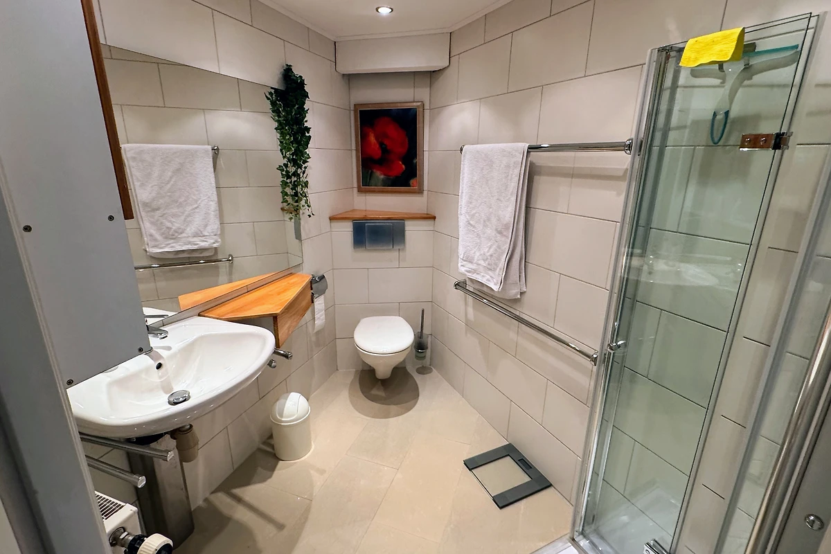 Willkommen im Ferienhaus Zeeside in Nieuwvliet-Bad – Ihrem Rückzugsort an der niederländischen Küste. Dieses Feriendomizil bietet auf 64 m² Platz für bis zu vier Gäste und verfügt über einen großen Wohn- Essbereich mit integrierter Küchenzeile. Ein Badezimmer mit Dusche und WC und eine Abstellkammer mit Spülmaschine, Waschmaschine, Mikrowelle mit Backofenfunktion und einem Trockener runden das Erdgeschoss ab. Im Obergeschoss gibt es ein weiteres Badezimmer mit Dusche und WC, sowie zwei Schlafzimmer (davon eins mit einem 1,80 m x 2,00 m großen Doppelbett und eins mit zwei Einzelbetten 0,9 x 2,0 m die bei Bedarf stapelbar sind). Die Schlafräume sind mit Außenrolladen und Fliegengittern ausgestattet.