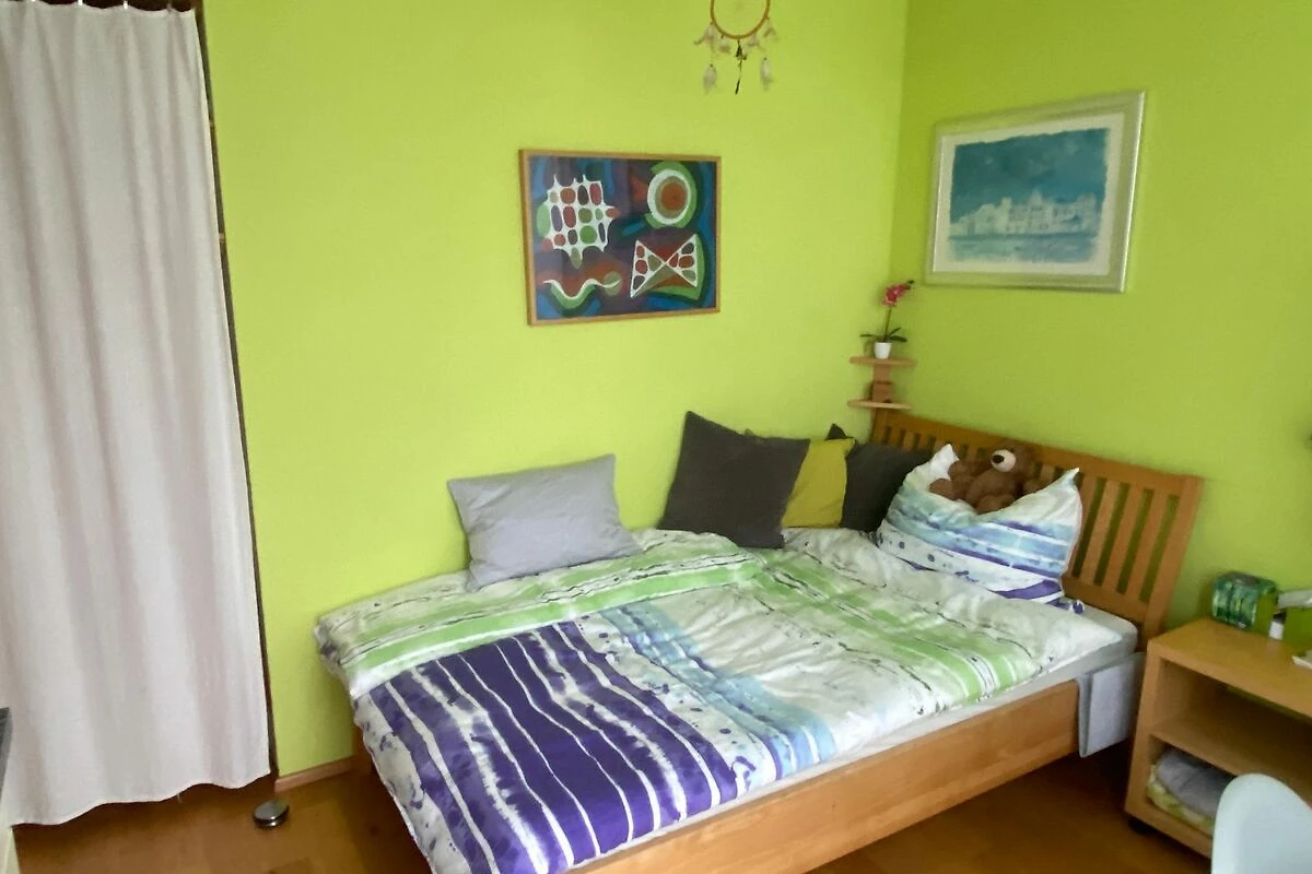 Achtung: das Bett ist nur 120 cm breit!!! Das ist vielleicht für manche Paare zu schmal... Bei Bedarf lege ich eine Faltmatratze auf den Boden. (Gerne vorher Bescheid geben, wenn das gewünscht wird, danke). Generell ist das Zimmer nicht gross, für 1 oder max. 2 Personen, aber es ist alles da, um eine herrliche Auszeit zu geniessen. Für Kinder ist es leider nicht geeignet. Metallfreies Relax-Bett (1,20 m x 2,00 m) für einen entspannten Schlaf.