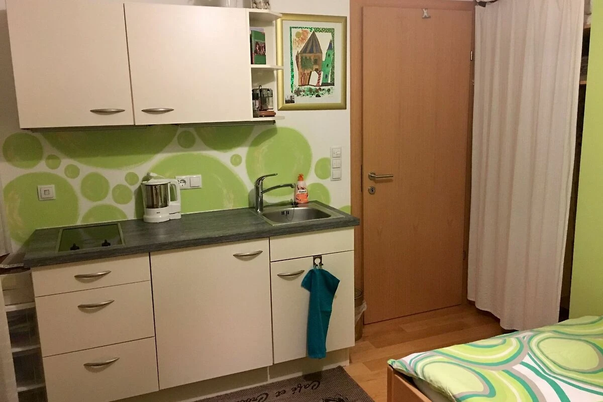 Das Studio hat ein eigenes Badezimmer (Dusche, Waschbecken, Spiegelschrank, WC), Miniküche und Balkon. Die Küche ist ausgestattet mit Kühlschrank, Kochplatte, Mikrowelle, Kaffee und Tee, Gewürze, Besteck, Teller etc. (Frühstück nicht inbegriffen!). Auf Wunsch stelle ich Sprudelwasser zur Verfügung. Das Leitungswasser ist hervorragend!