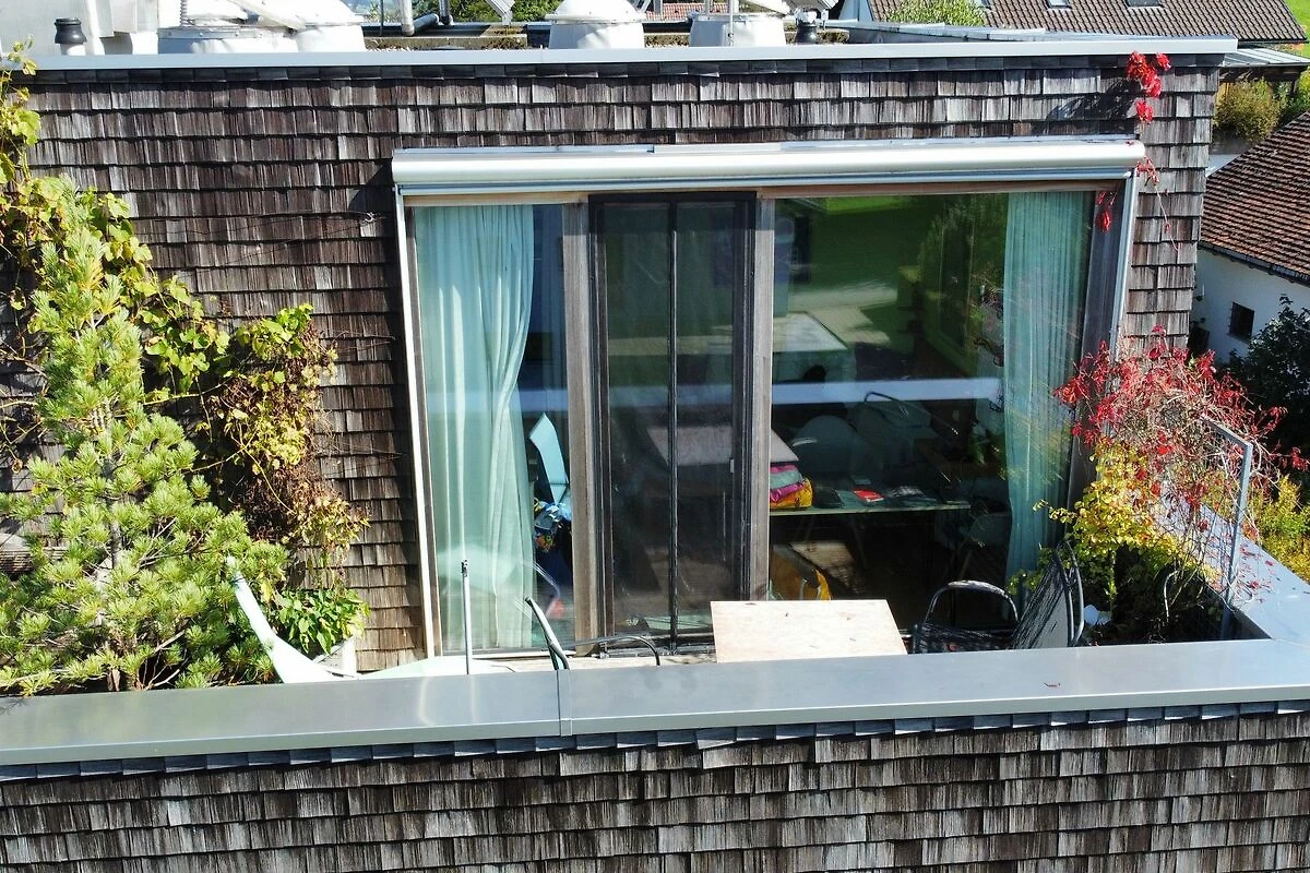 Helles, modernes Gästezimmer (in der privat bewohnten Penthouse-Wohnung). Tolle Aussicht durch raumhohe Panoramafenster! Wenn die Schiebetür zu ist, haben die Gäste ihre Privatsphäre. Nur der Eingangsbereich der Wohnung wird mit mir oder anderen Gästen geteilt, hier befinden sich auch eine Senseo-Kaffeemaschine und eine Mikrowelle mit Grillfunktion.