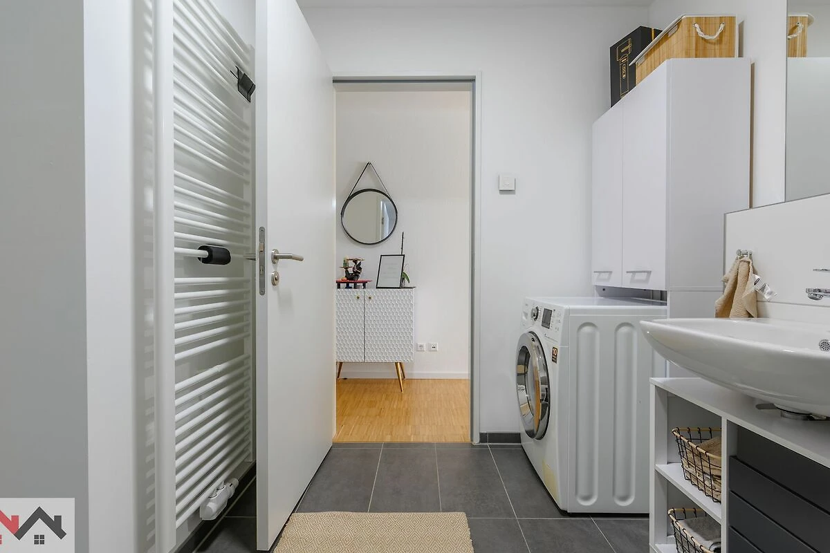 Frische Bettwäsche, Handtücher, WLAN, eine Waschmaschine und ein Bügeleisen sind im Preis enthalten. Kostenlose Parkplätze stehen direkt neben dem Gebäudeeingang zur Verfügung.