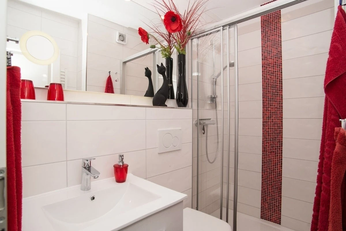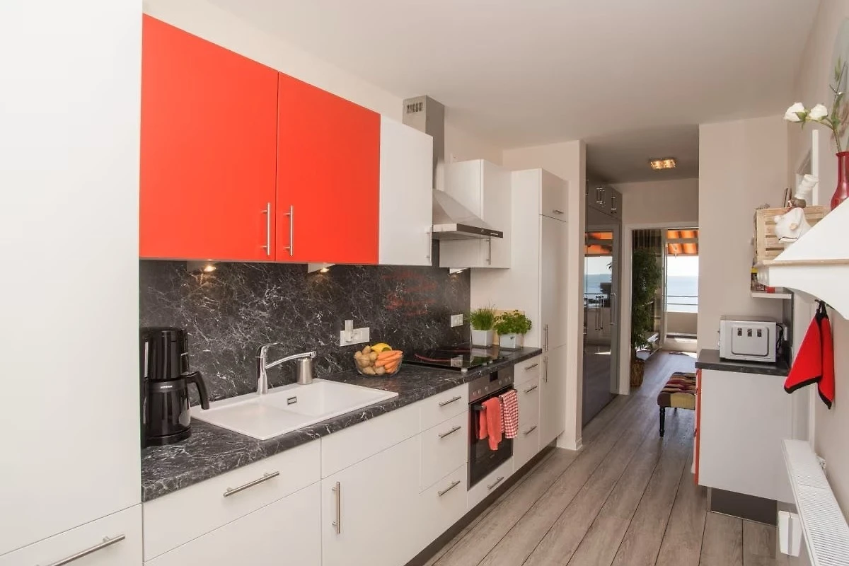 Bettwäsche und Handtücher können Sie getrost zuhause lassen. Sie können die Wäsche, pro Person je 1 Handtuch, 1 Duschtuch und 1 Küchenhandtuch, gegen Gebühr ausleihen. Die Betten sind dann selbstverständlich bereits, mit farblich abgestimmter Bettwäsche, frisch bezogen und Ihr Urlaub beginnt sofort. Die Küche ist komplett eingerichtet!! Lassen Sie alles zu Hause, was Sie zum Kochen benötigen könnten. Das Rezept im dritten Kochbuch von links, Seite 17, ist übrigens sehr zu empfehlen und schmeckt toll! Geniessen Sie das gemeinsam gekochte Essen, bei einem Glas Rotwein, anschliessend auf dem Balkon mit Blick auf die glitzernde Ostsee.