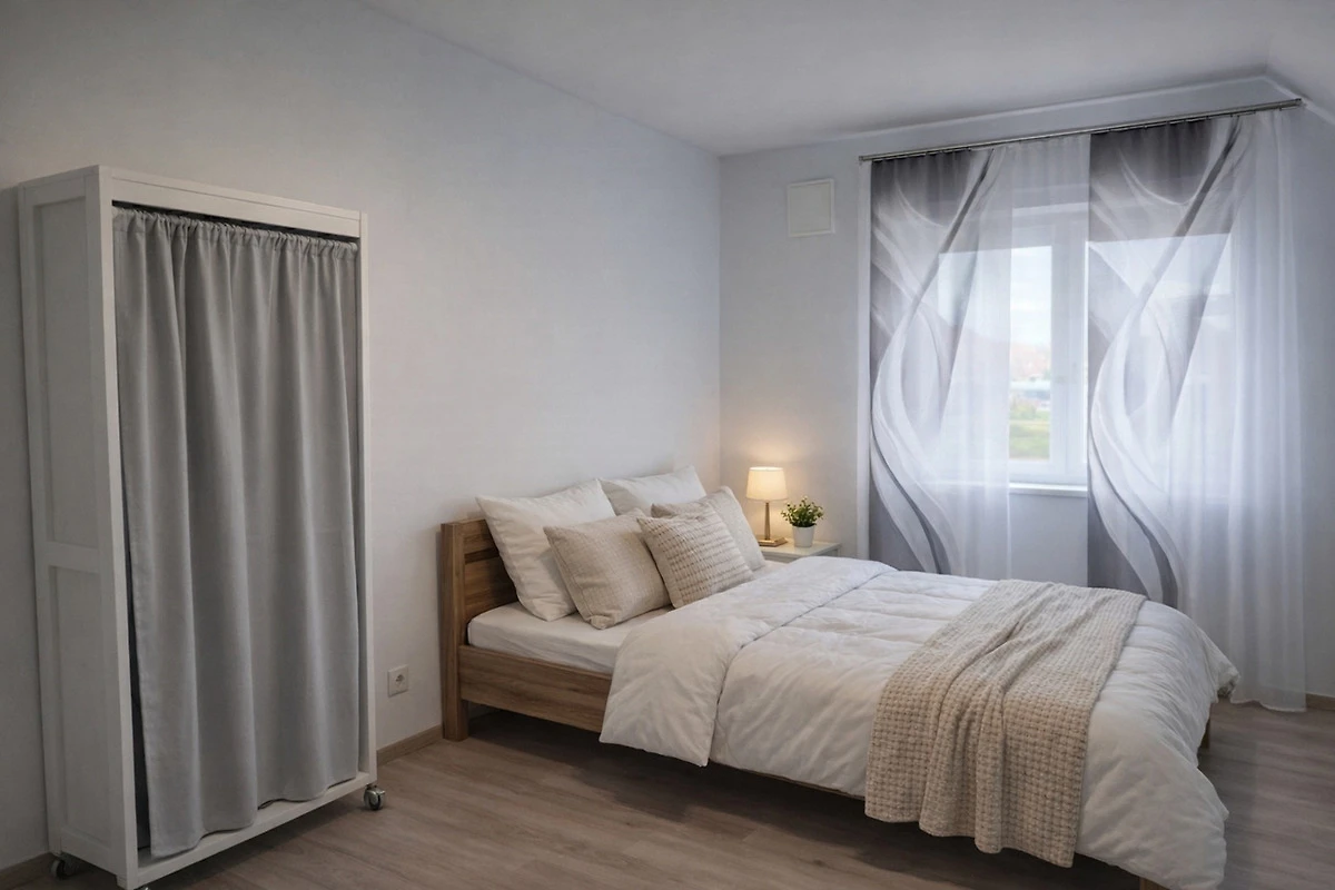 1x Doppelbett und Schlafcouch mit kleinem Kleiderschrank