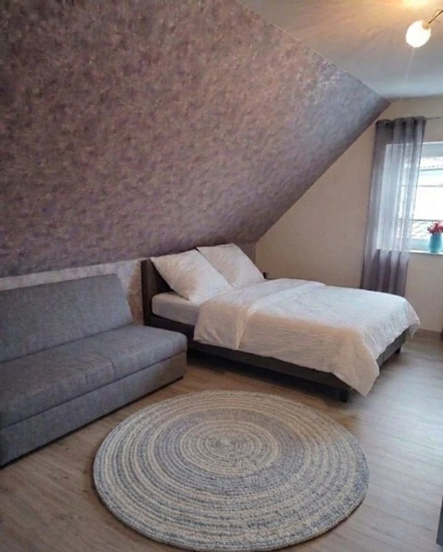1x Doppelbett und Schlafcouch mit grossem Kleiderschrank (2 Schiebetüren)
