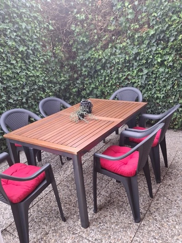 Der sonnige Gartenbereich mit seinem üppigen Grün lädt zum Verweilen ein, sei es für einen entspannten Kaffee, für Grillabende oder auch zum Toben für die Kids. Ausgewählte Kinderbücher und Spiele lassen ebenso keine Langeweile aufkommen.