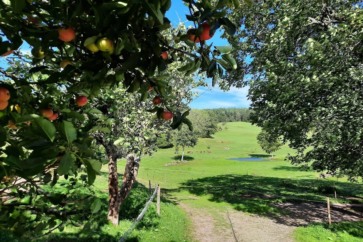 Wir genießen es sehr auf dieser Anhöhe zu leben, die in alle Richtungen offen ist. Und natürlich inmitten von Wiesen, Weiden, Feldern und Wäldern, den ganzen Tag von der Sonne umgeben. Kleine Verbindungsstrassen führen zu unseren Nachbarhöfen, aber mehr als die Nachbarn oder das Postauto kommt nicht bei uns vorbei. Vor dem Haus plätschert ein Brunnen und ein kleines Bächlein sucht seinen Weg talabwärts durch unsere Wiesen.