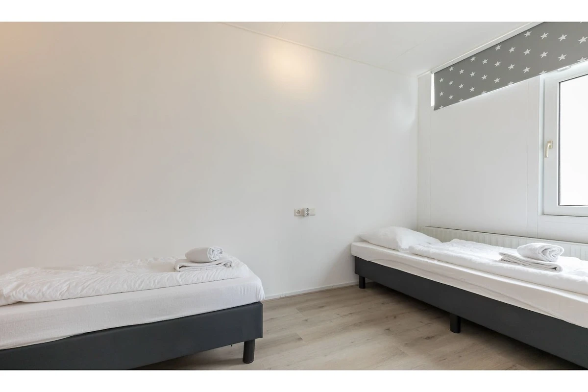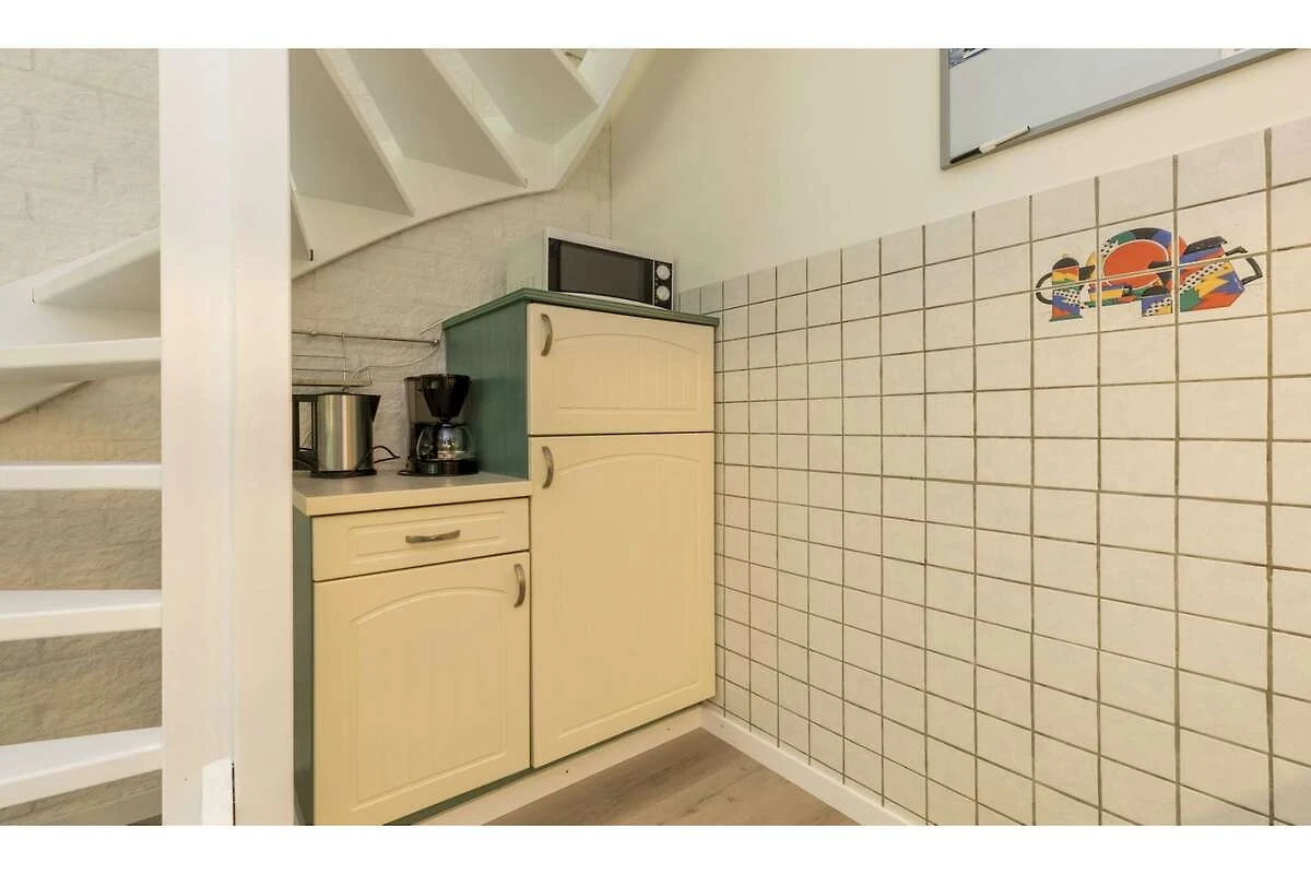 Schönes Ferienhaus in einem ruhigen Park, nahe dem Veerse Meer. Das Wohnzimmer verfügt über Terrassentüren zur Terrasse, wo Sie den großen umzäunten Garten genießen können. Die Küche ist mit allen Annehmlichkeiten wie Geschirrspüler, Kühlschrank mit Gefrierfach, Mikrowelle, Backofen, Filterkaffeemaschine und Toaster ausgestattet. Im Erdgeschoss befindet sich ein Schlafzimmer mit 2 Einzelbetten. Im 1. Stock befindet sich ein Schlafzimmer mit einem Doppelbett. Selbstverständlich gibt es WLAN. 1 Haustier ist erlaubt.