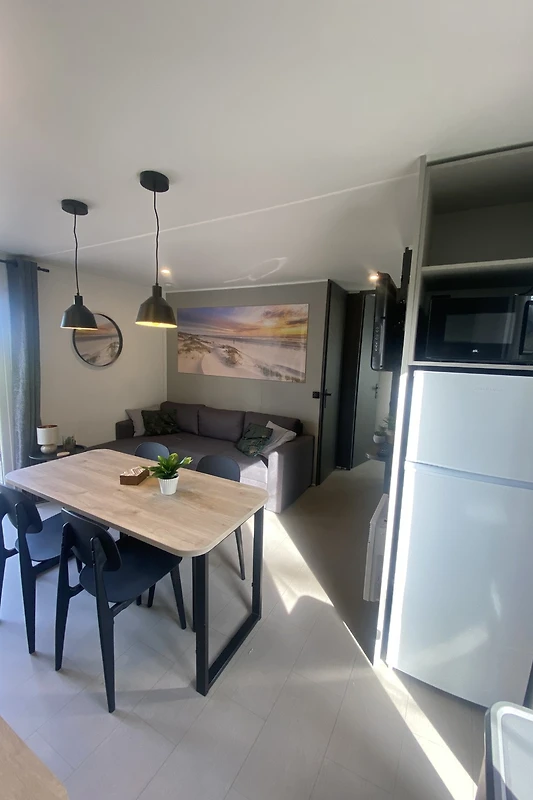 Willkommen im Ferienhaus Erholungsurlaub Waarland, Ihrem Rückzugsort in der reizvollen Landschaft Nordhollands. Dieses einladende Haus bietet auf 40 m² ausreichend Platz für zwei Gäste und ist ideal für Paare, die Ruhe und Erholung suchen. Das Schlafzimmer verspricht erholsamen Schlaf, während das moderne Bad Komfort für den Aufenthalt bietet. Im lichtdurchfluteten Wohnbereich genießen Sie entspannte Stunden – sei es beim Fernsehen oder beim gemeinsamen Essen am Esstisch. Die voll ausgestattete Küchenzeile verfügt über eine Mikrowelle, einen Wasserkocher und eine Kaffeemaschine, sodass Sie sich jederzeit kleine Köstlichkeiten zubereiten können. Frische Bettwäsche ist selbstverständlich vorhanden.