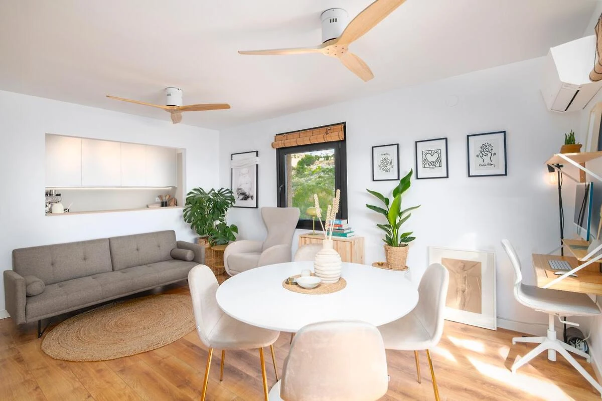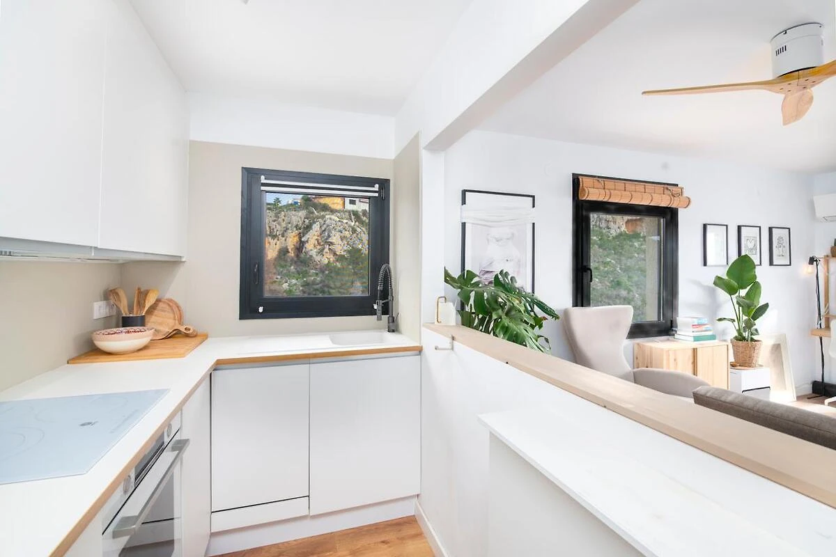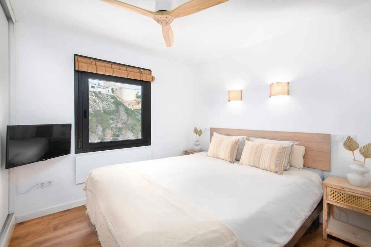 Willkommen in der Ferienwohnung Pueblo de la Luz in Benitachell – Ihr Rückzugsort für zwei Gäste, die Komfort und Erholung suchen. Auf 60 m² finden Sie ein geschmackvoll eingerichtetes Schlafzimmer mit hochwertiger Bettwäsche und ein gepflegtes Bad, ausgestattet mit Haartrockner und moderner Dusche. Der offene Wohnbereich lädt mit einem bequemen Sofa, TV und kostenlosem Wifi zum Entspannen ein. Die Küchenzeile lässt keine Wünsche offen: Sie verfügt über einen Geschirrspüler, eine Mikrowelle, einen Wasserkocher, eine Kaffeemaschine und alles, was Sie zur Selbstverpflegung benötigen. Eine Waschmaschine, Bügeleisen und Bügelbrett stehen ebenfalls bereit.