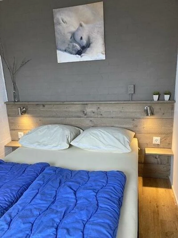 Im Obergeschoss befindet sich ein zweites Schlafzimmer mit 2 separaten Boxspringbetten (2 x 90 x 200) und 2 Einzelbettdecken mit Kopfkissen.