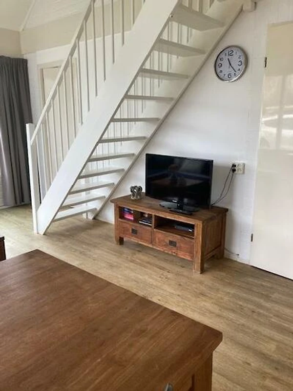 Im Erdgeschoss befindet sich ein Wohnzimmer mit einer gut ausgestatteten offenen Küche mit Geschirrspüler. Es gibt ein Schlafzimmer mit Doppel-Boxspringbett (140 x 200) und 2 Einzel-Bettdecken mit Kissen, ein Badezimmer mit Waschbecken und Dusche und eine separate Toilette.