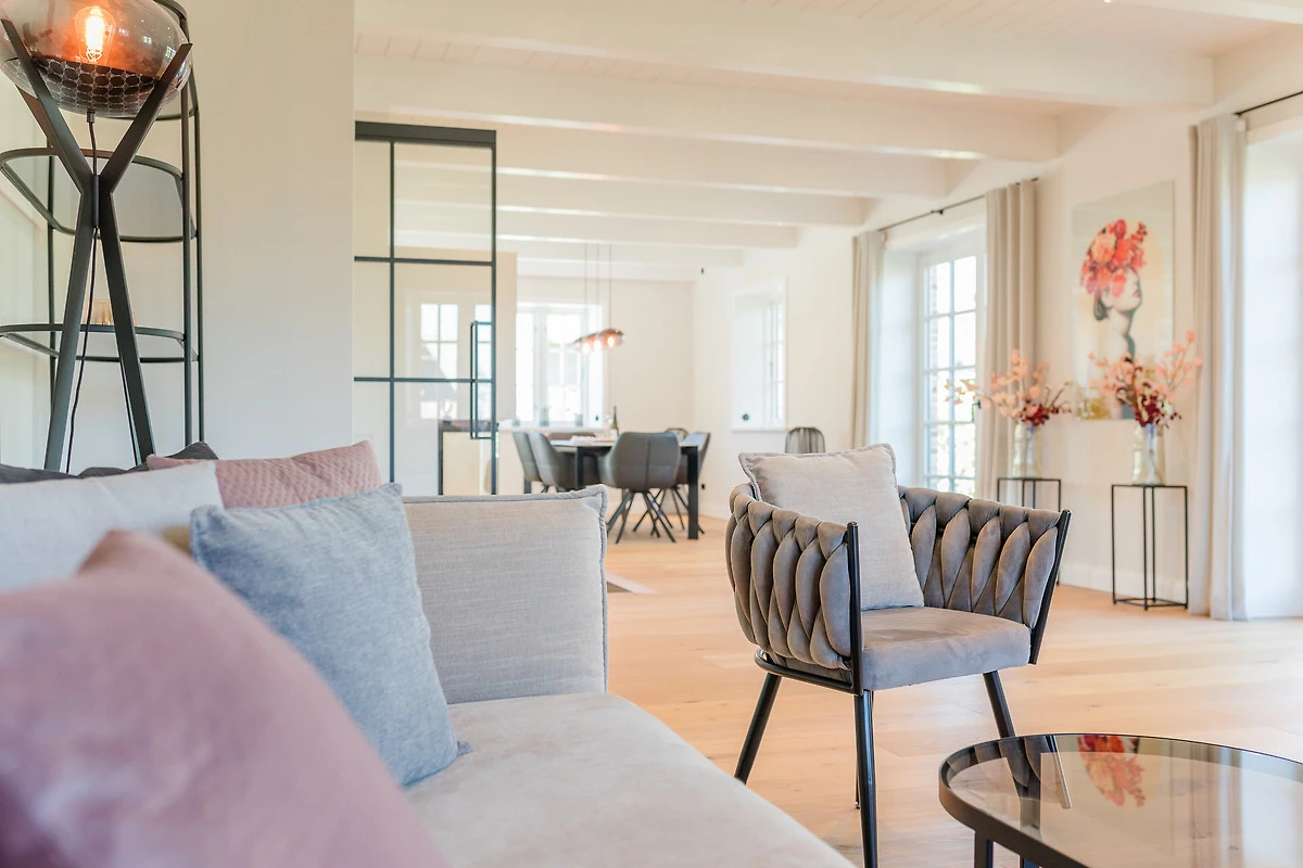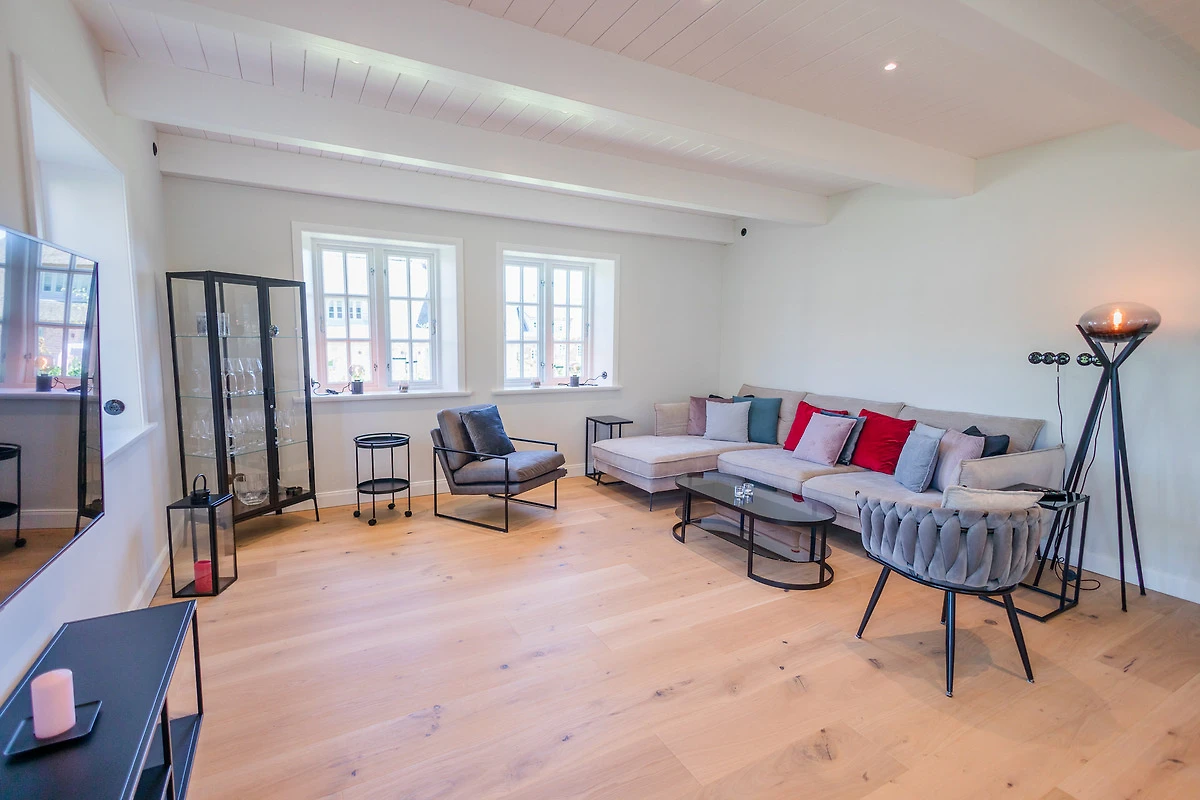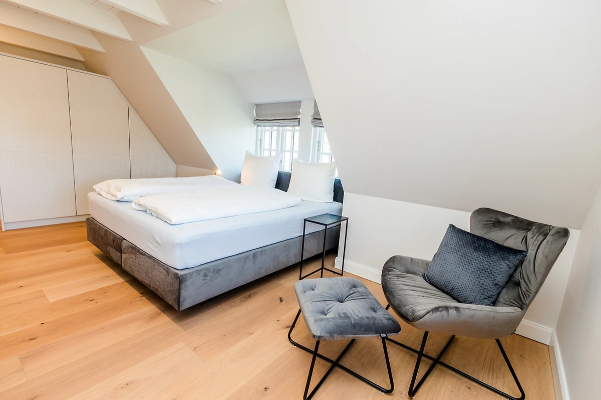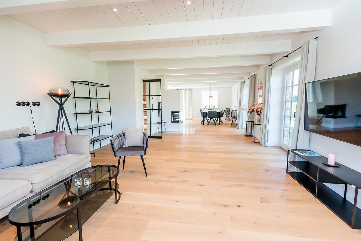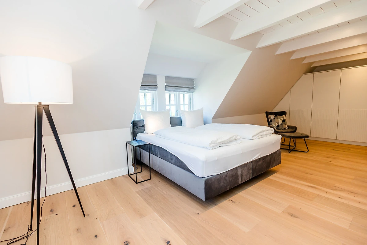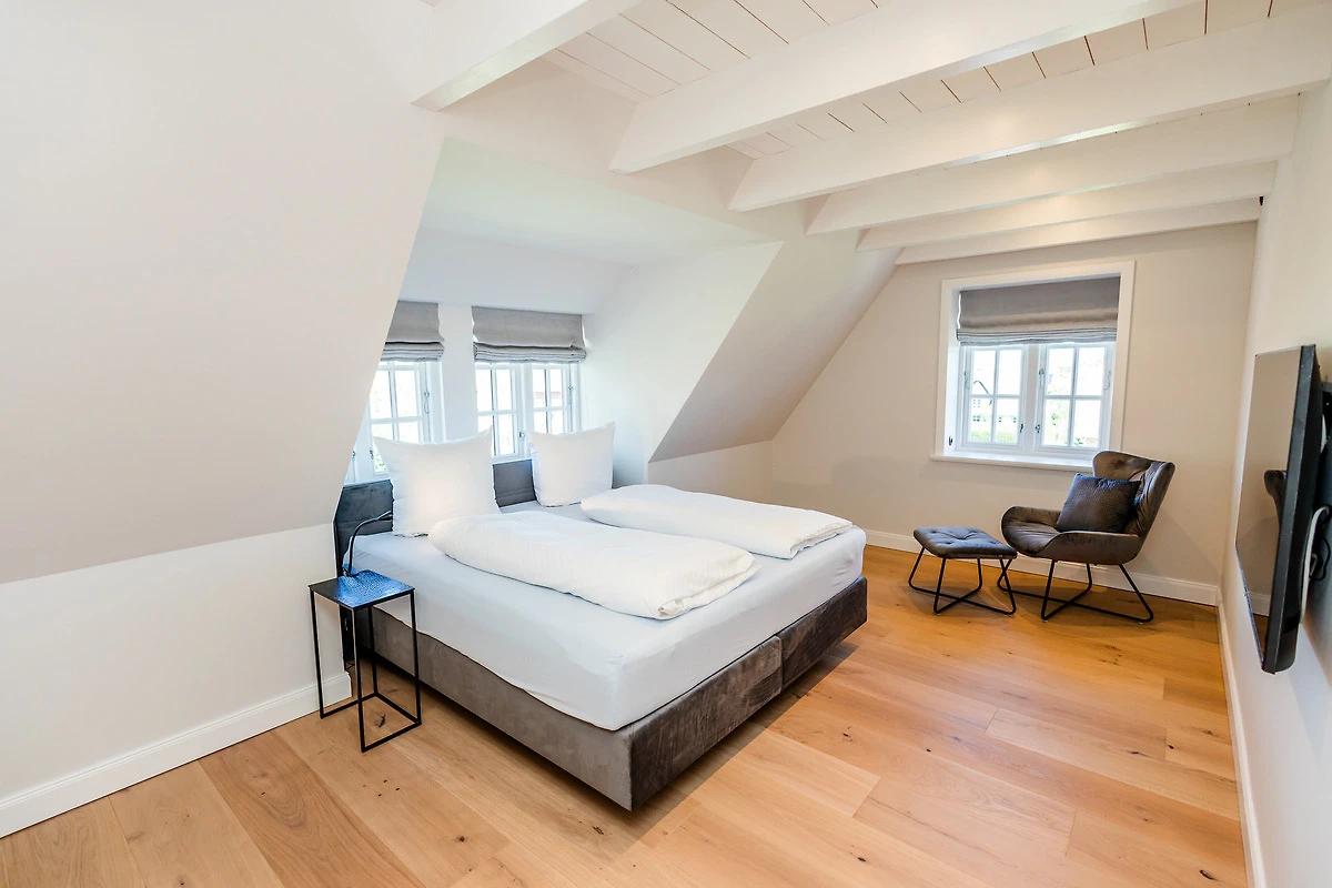 Das Reethüs Oevenum auf Föhr bietet Platz für bis zu sechs Personen und auch ein Hund ist herzlich willkommen. Die Highlights des Einzelhauses sind ein grosszügiger, offener Wohn- und Essbereich, eine sonnige Südwest-Terrasse mit hochwertiger Möblierung und ein stilvoller Panorama-Kamin, der auch an kühleren Tagen für gemütliche Atmosphäre sorgt. In der voll ausgestatteten Küche sind besonders zu erwähnen: die zwei Backöfen, Dampfgarer, Quooker-Wasserhahn, sowie eine separate Speisekammer und ein HWR mit Waschmaschine, Trockner und grossem Gefrierschrank. Die drei komfortablen Schlafzimmer - ein Schlafzimmer mit[nbsp] Bad En-suite - mit Boxspringbetten befinden sich im Obergeschoss. Zwei moderne Duschbäder - eines im Erdgeschoss und eines im Obergeschoss runden die Raumaufteilung ab.