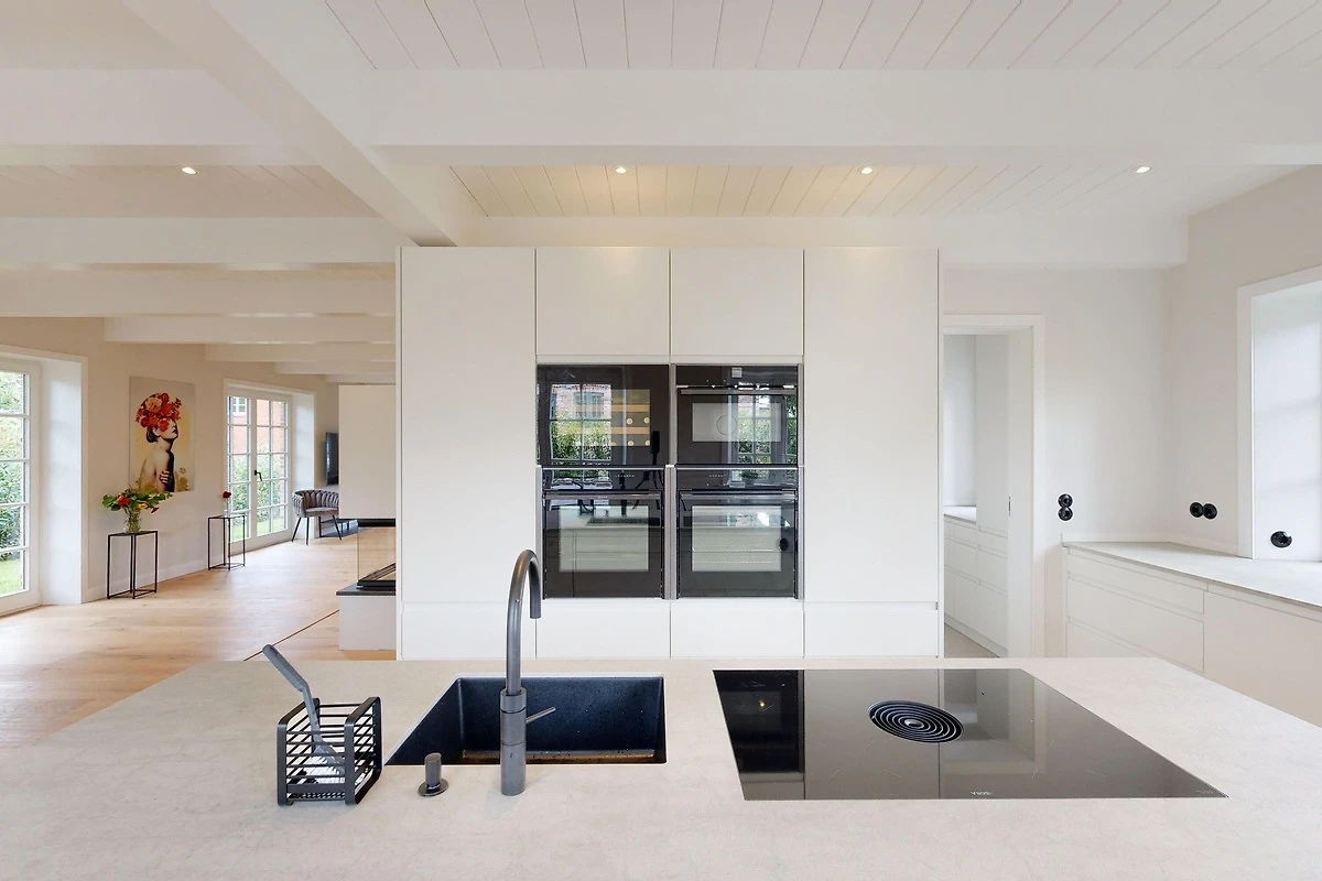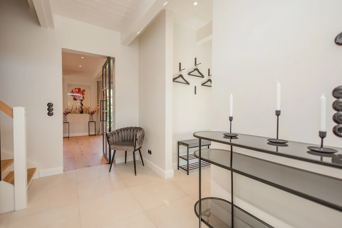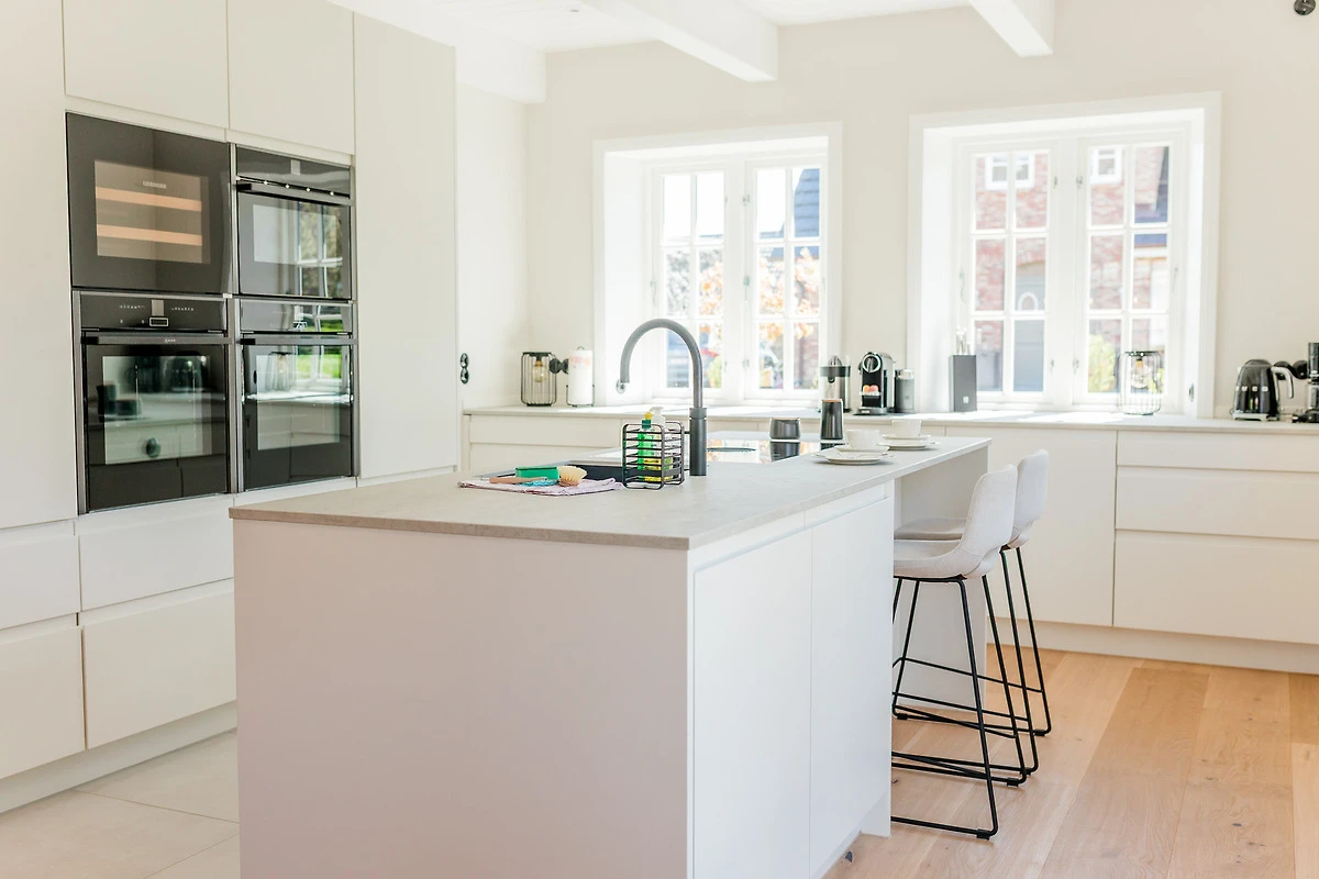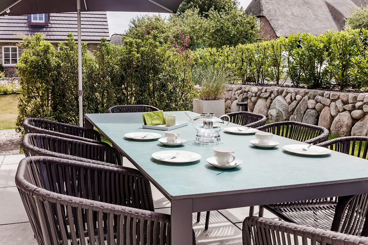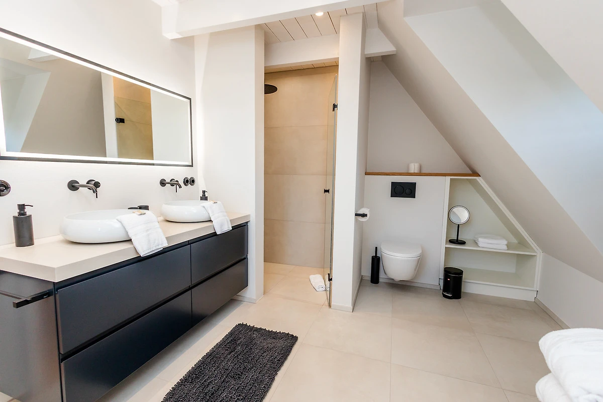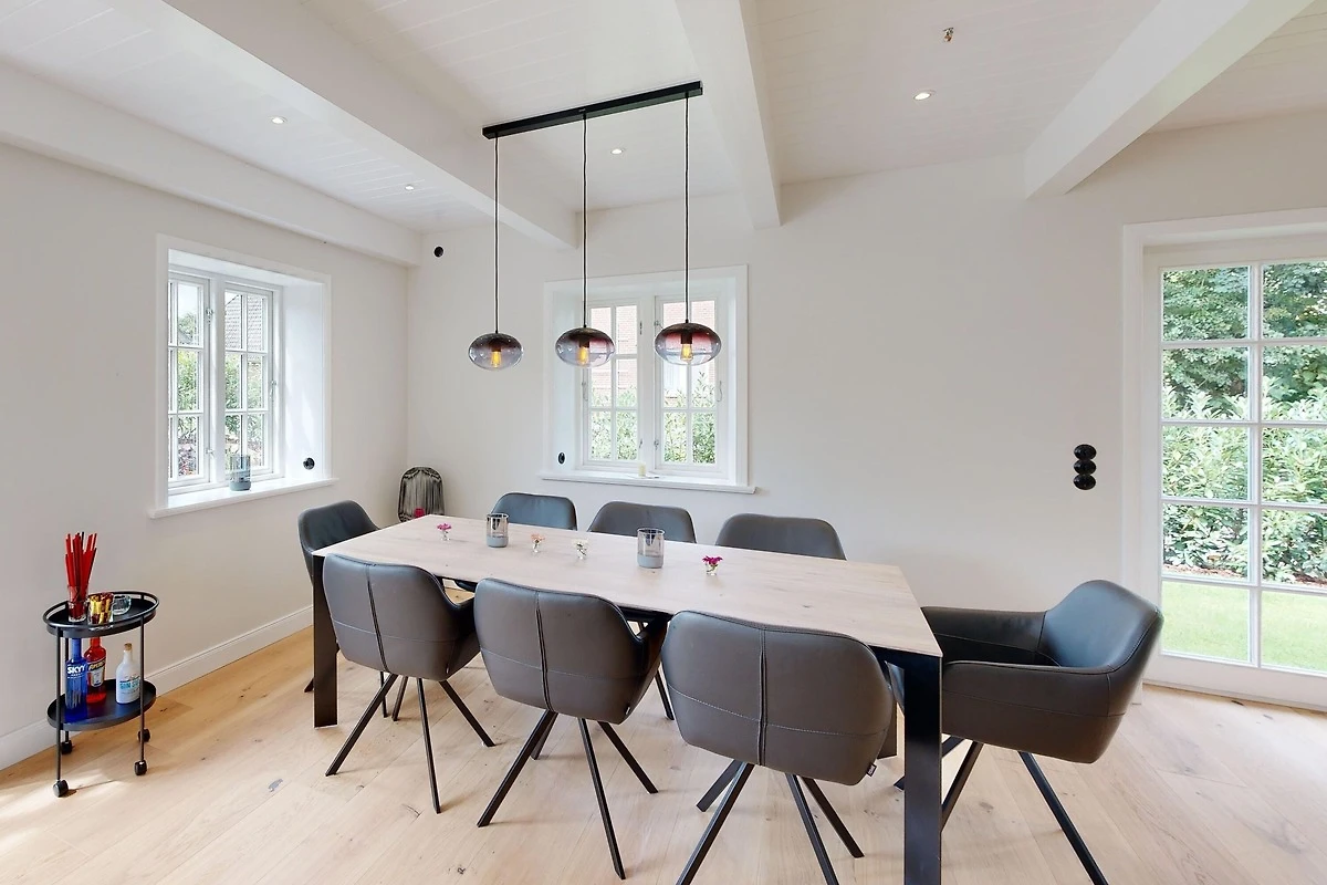 Das Reethüs Oevenum auf Föhr bietet Platz für bis zu sechs Personen und auch ein Hund ist herzlich willkommen. Die Highlights des Einzelhauses sind ein grosszügiger, offener Wohn- und Essbereich, eine sonnige Südwest-Terrasse mit hochwertiger Möblierung und ein stilvoller Panorama-Kamin, der auch an kühleren Tagen für gemütliche Atmosphäre sorgt. In der voll ausgestatteten Küche sind besonders zu erwähnen: die zwei Backöfen, Dampfgarer, Quooker-Wasserhahn, sowie eine separate Speisekammer und ein HWR mit Waschmaschine, Trockner und grossem Gefrierschrank. Die drei komfortablen Schlafzimmer - ein Schlafzimmer mit[nbsp] Bad En-suite - mit Boxspringbetten befinden sich im Obergeschoss. Zwei moderne Duschbäder - eines im Erdgeschoss und eines im Obergeschoss runden die Raumaufteilung ab.