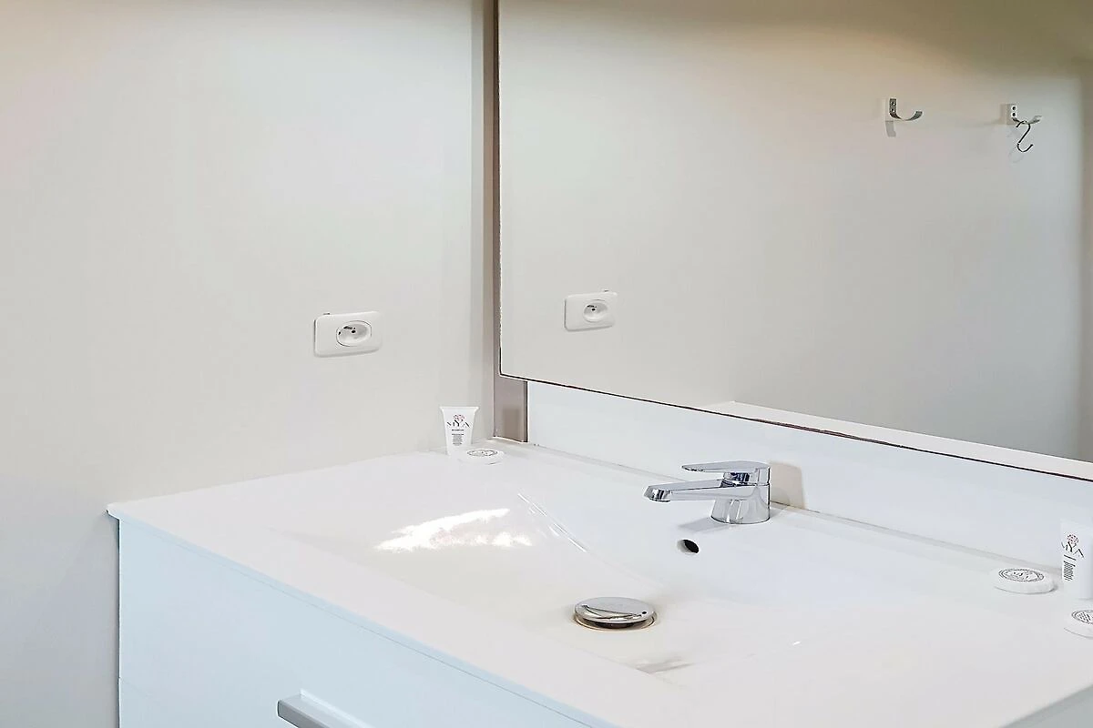 Das Interieur besticht durch seine clevere Raumaufteilung und bietet zwei Schlafzimmer sowie einen flexiblen Wohnbereich. Das Hauptschlafzimmer verfügt über ein komfortables Doppelbett, während das zweite Schlafzimmer mit einem Etagenbett und einem Ausziehbett ausgestattet ist – perfekt für Kinder oder Gruppen. Für zusätzliche Flexibilität bietet das Wohnzimmer ein weiteres Ausziehbett. Die elegante, offene Küche ist komplett ausgestattet und lässt keine Wünsche offen: Geschirrspüler, Elektroherd und Mikrowelle machen die Zubereitung von Mahlzeiten im Urlaub zum Kinderspiel. Dank Klimaanlage und Highspeed-Internet genießen Sie alle modernen Annehmlichkeiten.