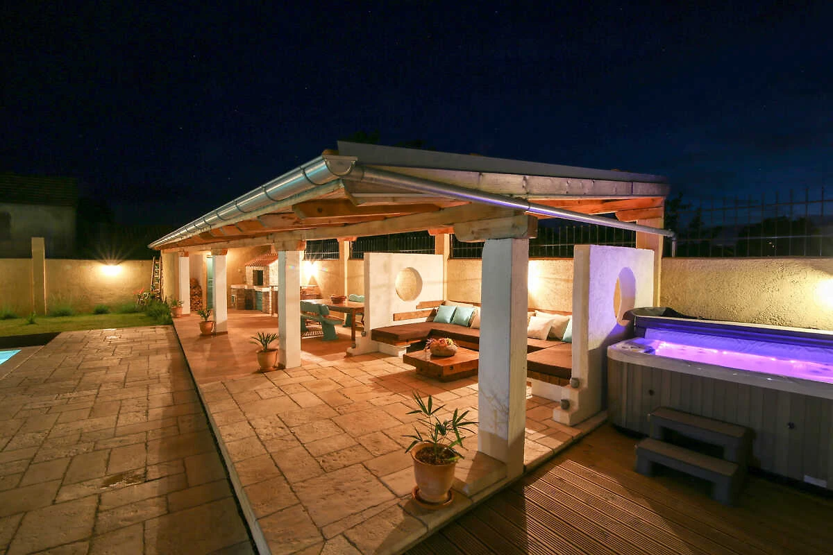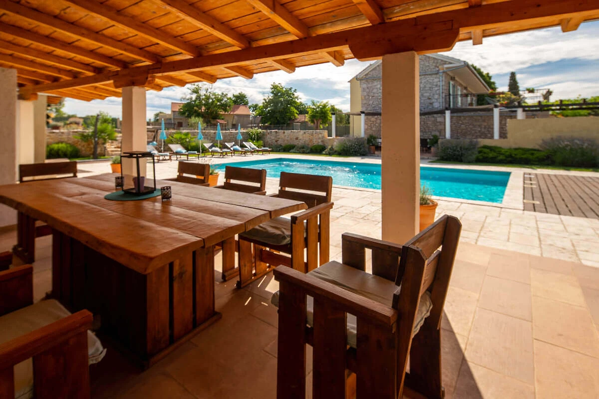 Willkommen im Ferienhaus Erholungsurlaub in Sv. Filip i Jakov – Ihr Rückzugsort für unvergessliche Urlaubstage mit Familie oder Freunden! Hier genießen bis zu 10 Gäste auf großzügigen 360 m² Wohnfläche höchsten Komfort und viel Privatsphäre. Vier Schlafzimmer und vier Badezimmer bieten ausreichend Raum für alle. Nach einem Tag am nahen Meer entspannen Sie auf der sonnigen Terrasse oder erfrischen sich im großen Swimmingpool. Für gesellige Abende steht Ihnen ein BBQ-Grill zur Verfügung. Der Whirlpool und die Sauna laden zum Wohlfühlen ein, während der Fitnessraum sportliche Abwechslung bietet. Die voll ausgestattete Küche mit Spülmaschine, Mikrowelle und Kaffeemaschine macht das Kochen zum Vergnügen. Bettwäsche ist selbstverständlich vorhanden. Im gemütlichen Wohnbereich sorgen TV und WLAN für Unterhaltung. Klimaanlage garantiert angenehme Temperaturen zu jeder Jahreszeit. Für Ihren Komfort stehen Waschmaschine, Bügeleisen und Haartrockner bereit. Ein privater Parkplatz ist direkt am Haus vorhanden. Das Ferienhaus ist ausschließlich für Nichtraucher vorgesehen. Genießen Sie Ihre Auszeit in einem stilvollen Ambiente, das keine Wünsche offenlässt – für einen entspannten und erholsamen Urlaub an der kroatischen Adriaküste!