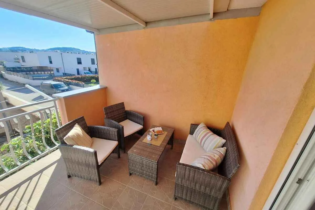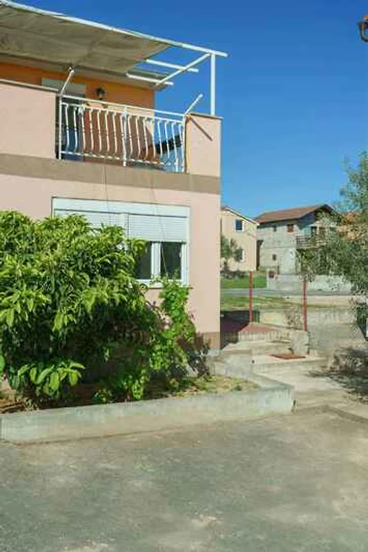 Vodice. Der Vermieter wohnt nicht im Haus oder auf dem Grundstück. Die Zufahrt erfolgt über eine Nebenstrasse (asphaltiert). Parkplatz auf dem Grundstück.
