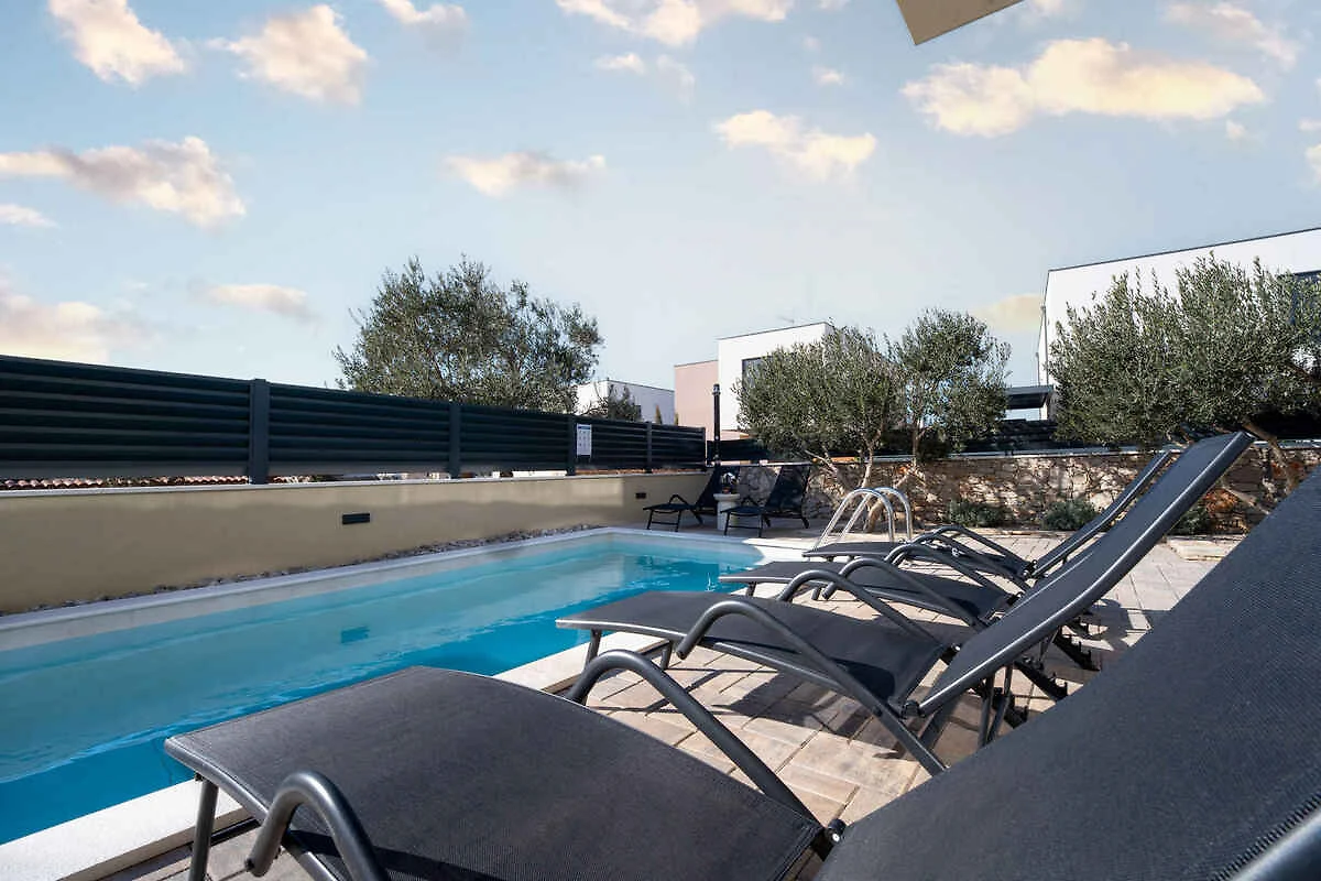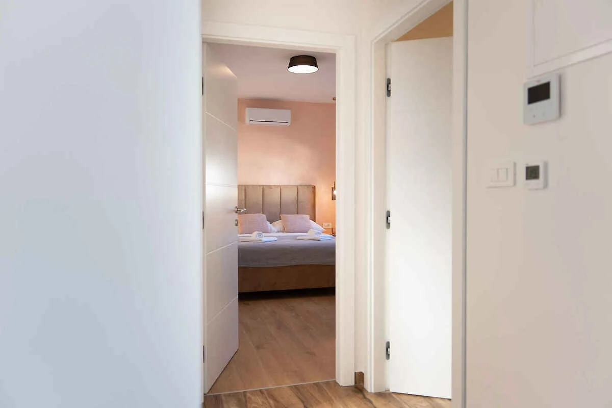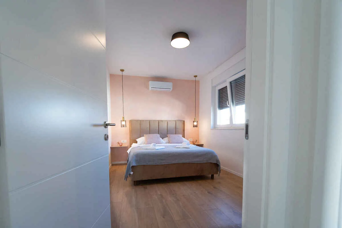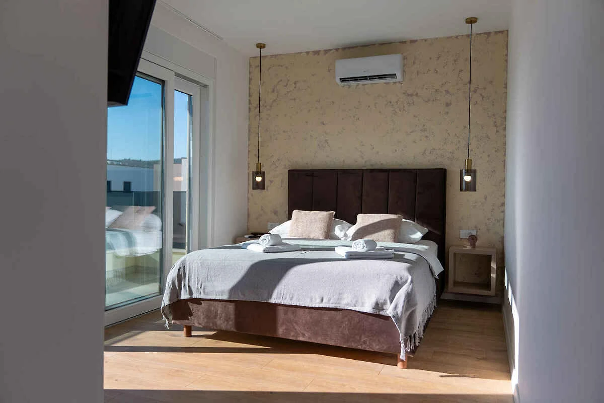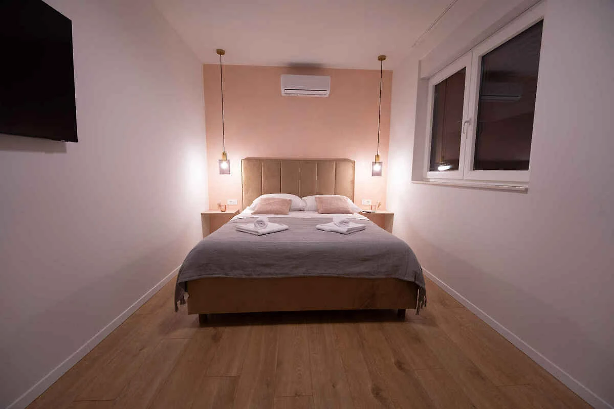 Der Eingang in Ihre Villa ist ebenerdig und führt direkt in den Flur. Aufenthaltsraum mit Sitzecke, TV, Essecke und Zugang zur Terrasse. 4 Schlafzimmer jeweils mit 1 Doppelbett (Kingsize). Küche mit Klimaanlage, Essecke, Elektroherd (Induktionsherd), Backofen, Dunstabzugshaube, Geschirrspüler, Kühlschrank (Eisfach), Mikrowelle, Kaffeemaschine, elektrischem Wasserkocher und Zugang zur Terrasse. Abstellraum im Flur mit soba sa perilicom i sušilicom za robu. Bad mit Dusche, WC und privatna u sklopu spavaće sobe. 2 Bäder jeweils mit Dusche und WC.