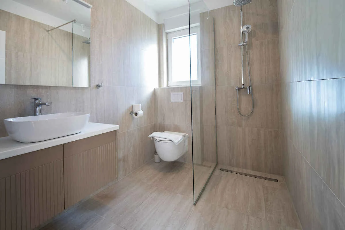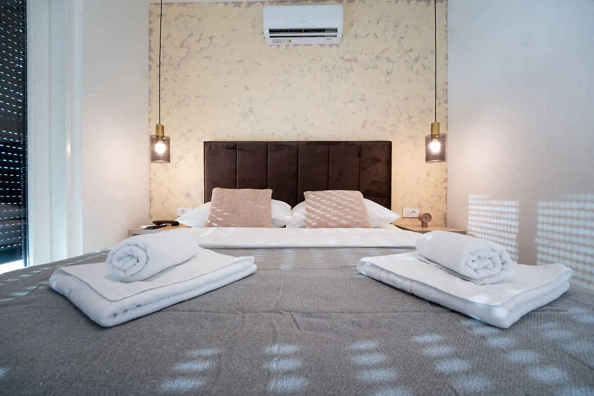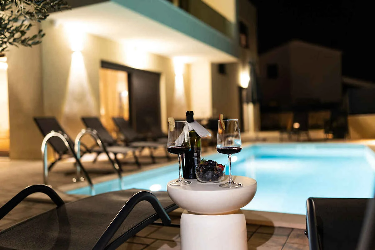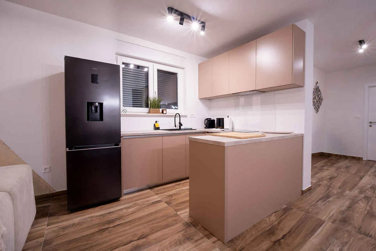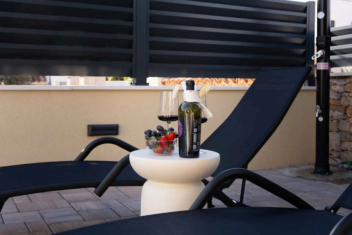 Der Eingang in Ihre Villa ist ebenerdig und führt direkt in den Flur. Aufenthaltsraum mit Sitzecke, TV, Essecke und Zugang zur Terrasse. 4 Schlafzimmer jeweils mit 1 Doppelbett (Kingsize). Küche mit Klimaanlage, Essecke, Elektroherd (Induktionsherd), Backofen, Dunstabzugshaube, Geschirrspüler, Kühlschrank (Eisfach), Mikrowelle, Kaffeemaschine, elektrischem Wasserkocher und Zugang zur Terrasse. Abstellraum im Flur mit soba sa perilicom i sušilicom za robu. Bad mit Dusche, WC und privatna u sklopu spavaće sobe. 2 Bäder jeweils mit Dusche und WC.