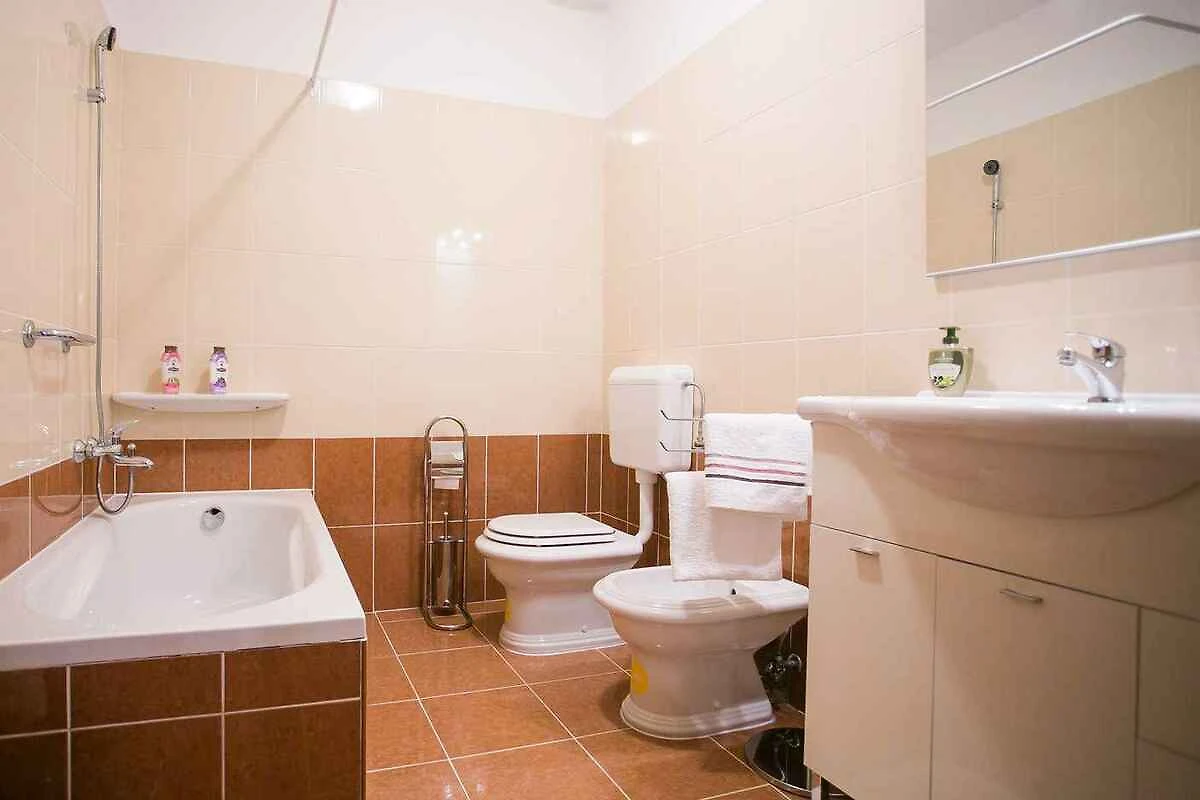 Die Ferienwohnung befindet sich in einem Apartementhaus und ist rustikal eingerichtet. Zur Nutzung stehen zur Verfügung: Sonnenschirm, Sonnenliege, Kinderspielplatz, Gartendusche, Grillmöglichkeit, Terrasse und Gartenmöbel.