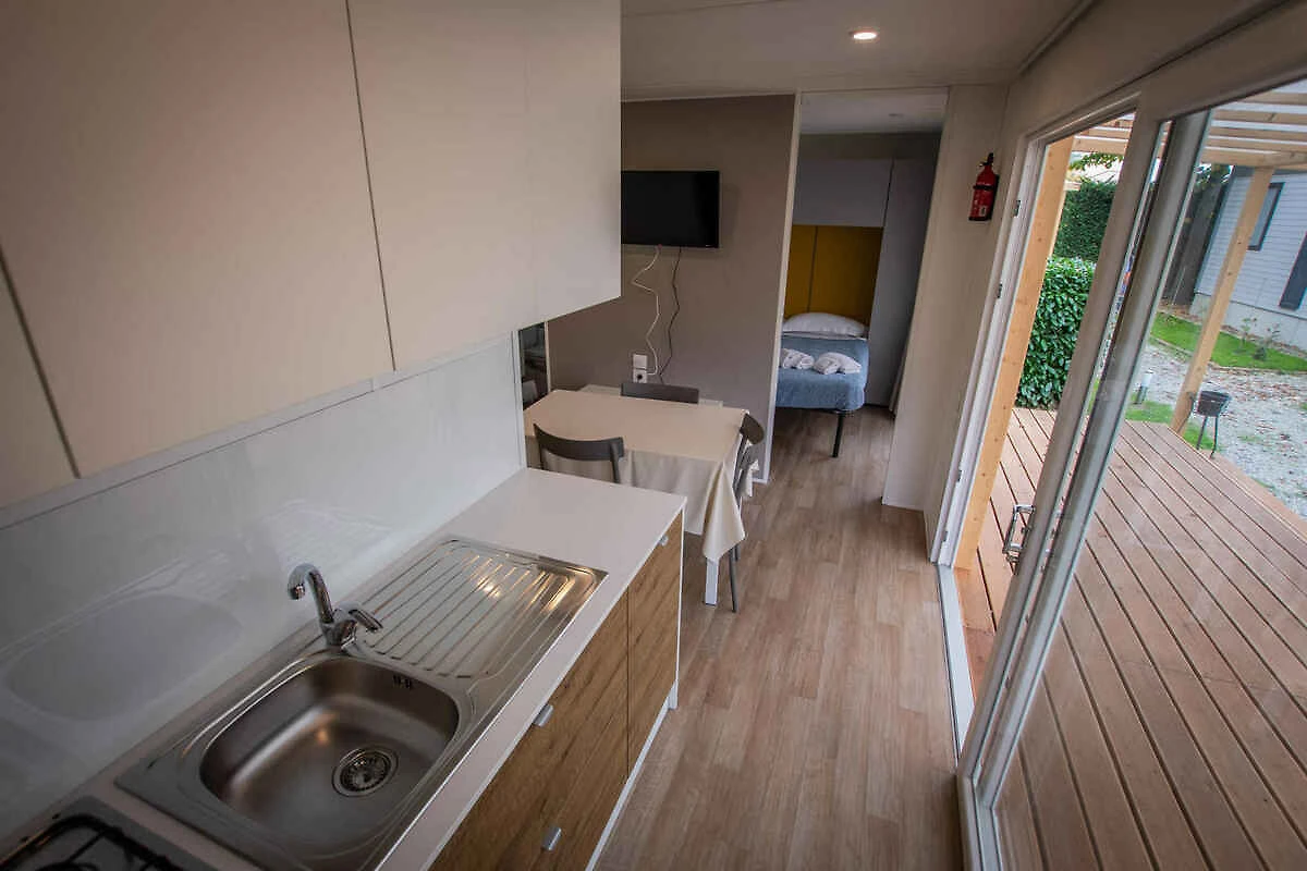 Alba. Das Mobilehome befindet sich in einer Ferienanlage, auf einem Gartengrundstück mit Wiese. Die Privatsphäre des Zimmers oder der Wohnung in Verbindung mit der Möglichkeit, sich im Grünen zu entspannen, zwischen dem Garten und dem Waldgebiet, das Ruhe schafft, ist gewährleistet.