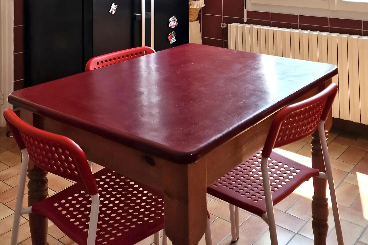 Das Erdgeschoss verfügt über eine voll ausgestattete Küche, ein Esszimmer mit großem Tisch für gesellige Mahlzeiten und ein gemütliches Wohnzimmer, das zum Entspannen einlädt. Vom Esszimmer aus gelangen Sie auf eine Terrasse mit Gartenmöbeln, Liegestühlen und Grill, umgeben von einem schönen Garten mit Bäumen und Blumen.