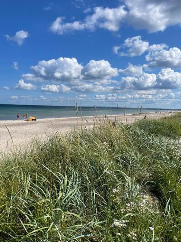 Unser Ferienhaus liegt nur ca. 600 Meter vom langen Sandstrand entfernt. Das flach abfallende Wasser ist ideal für Kinder.