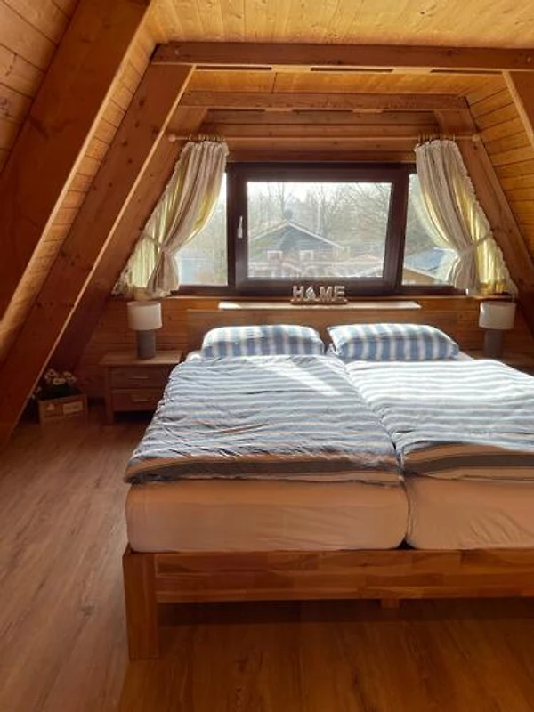 Im 1.OG befinden sich die beiden Schlafzimmer. Das größere Zimmer ist mit einem Doppelbett (2 Matratzen je 90x200 cm) , einem Kleiderschrank sowie einem Fernseher ausgestattet.