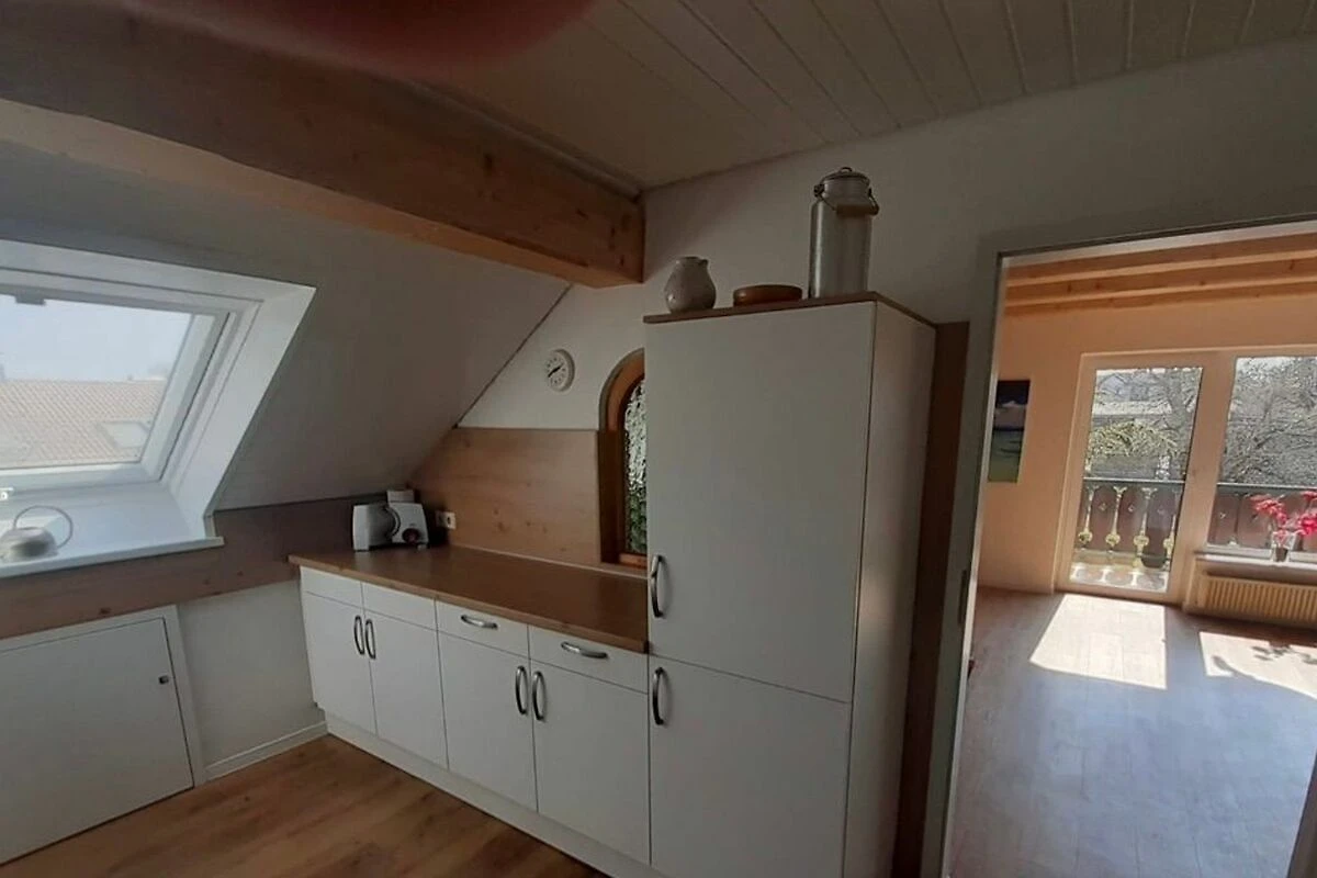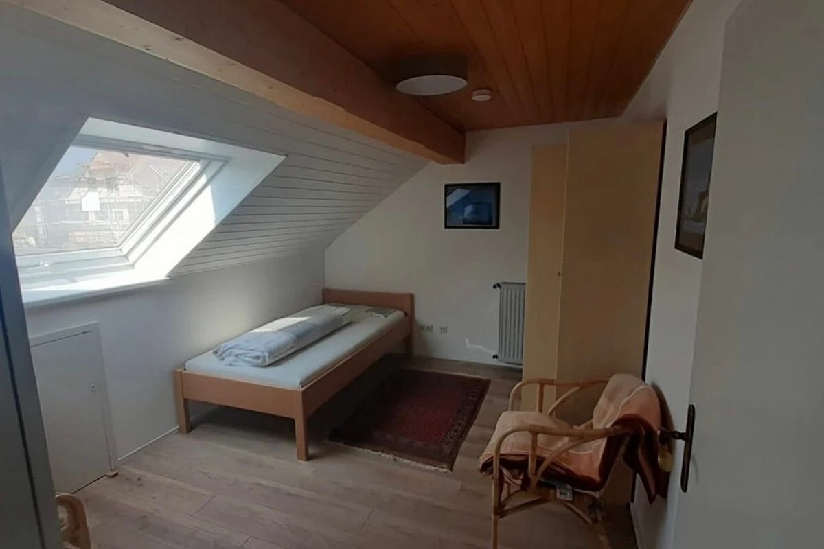 Grosszügige Dachgeschosswohnung mit 2 getrennten Schlafzimmern für bis zu 4 Personen.