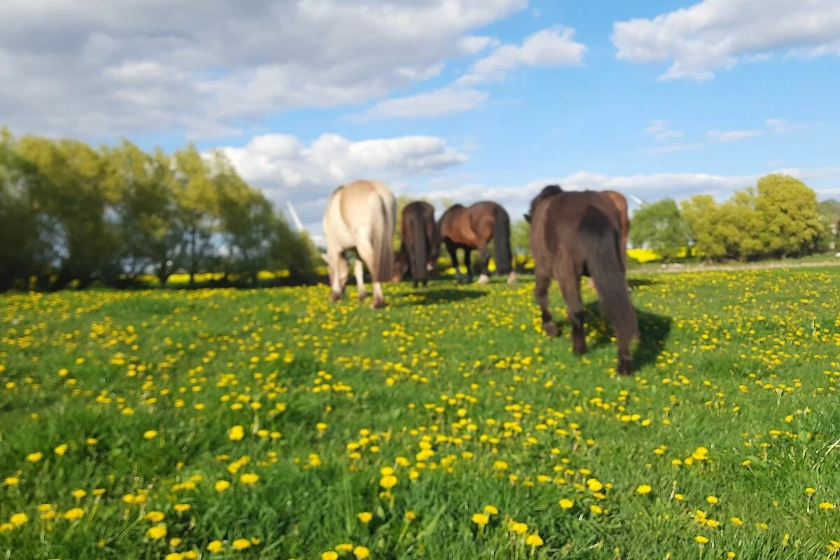 Herrlicher Weitblick auf Pferde- und Kuhweiden, Gartenteich und Dorfidylle.
