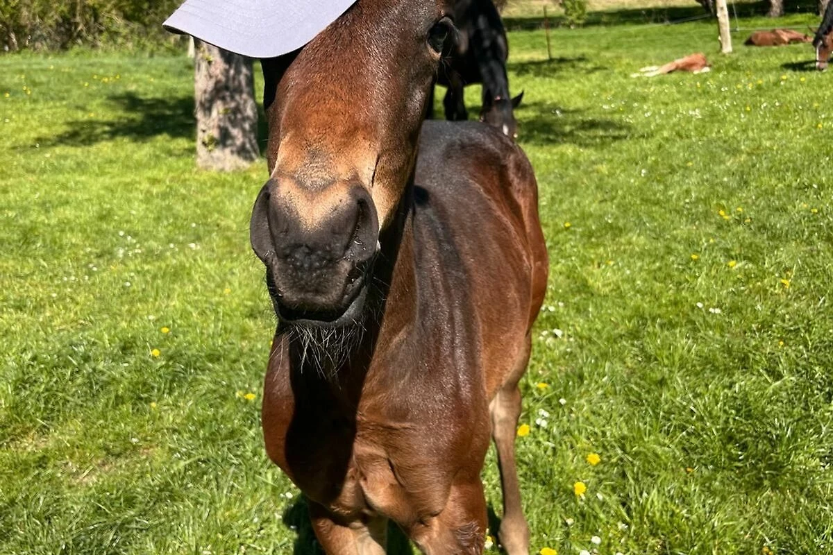 Herrlicher Weitblick auf Pferde- und Kuhweiden, Gartenteich und Dorfidylle.