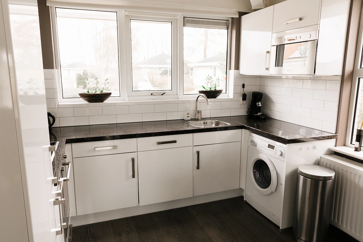 Die offene Küche ist mit allem ausgestattet, was das Herz begehrt: Geschirrspüler, Wasserkocher, Kaffeemaschine und sämtliches Kochzubehör lassen keine Wünsche offen. Bettwäsche ist inklusive, und für Familien stehen ein Kinderbett sowie ein Hochstuhl bereit. Die Waschmaschine, ein Bügeleisen sowie ein Haartrockner bieten zusätzlichen Komfort – ideal auch für längere Aufenthalte oder Monteure.