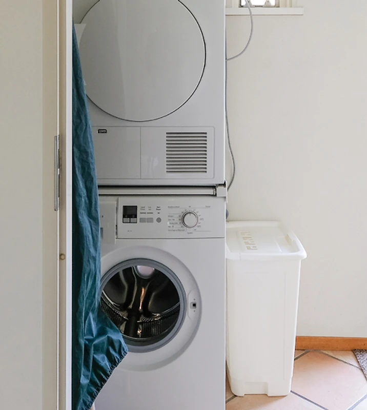Die offene Küche ist komplett ausgestattet und verfügt über einen Geschirrspüler, Filterkaffeemaschine, 4-Flammen-gasherd und Mikrowelle mit Backofen. Im Abstellraum stehen Ihnen sowohl eine Waschmaschine als auch ein Trockner zur Verfügung.