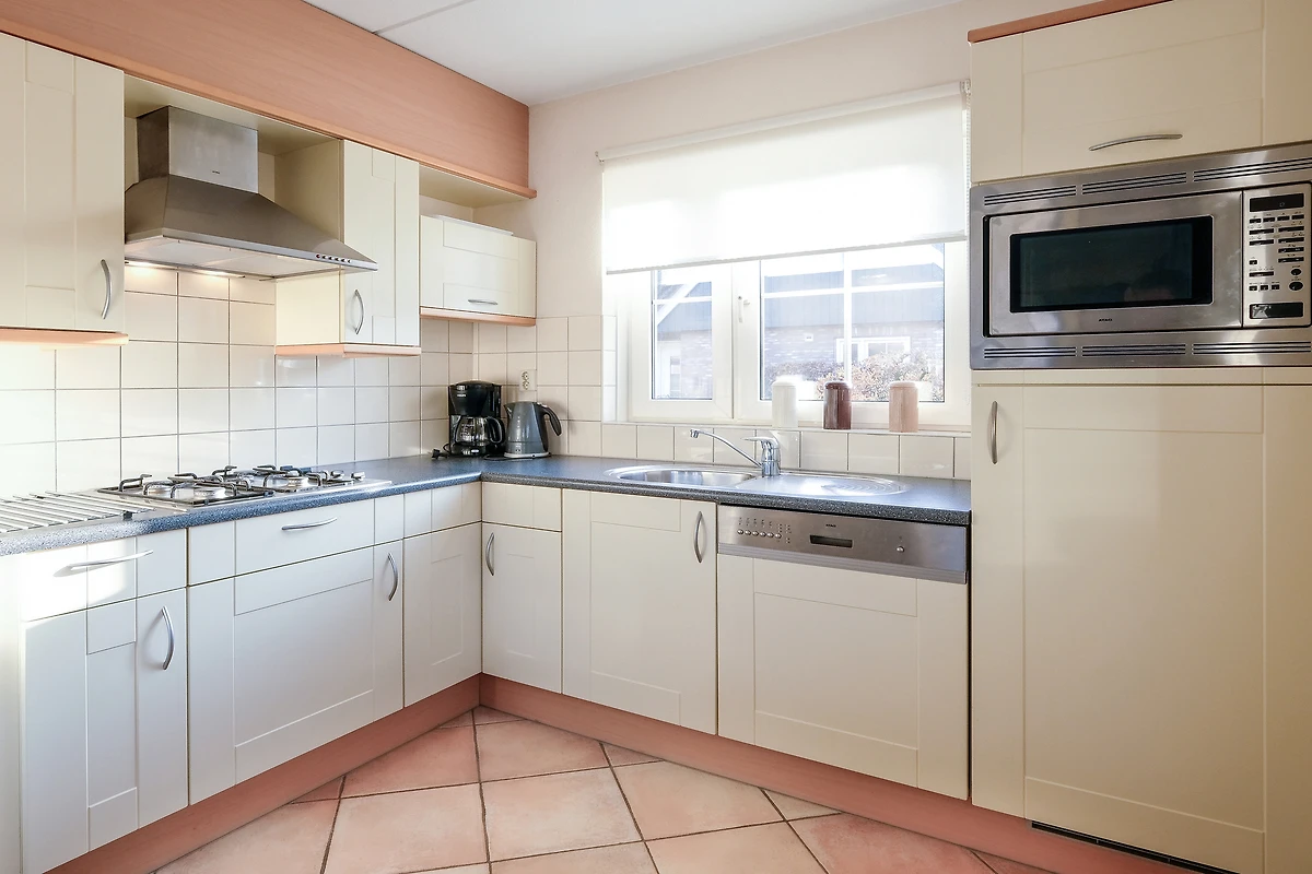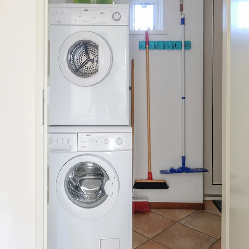 Die offene Küche ist komplett ausgestattet und verfügt über einen Geschirrspüler, Filterkaffeemaschine, 4-Flammen-gasherd und Mikrowelle (Mit Backofen). Im Abstellraum stehen Ihnen sowohl eine Waschmaschine als auch ein Trockner zur Verfügung.