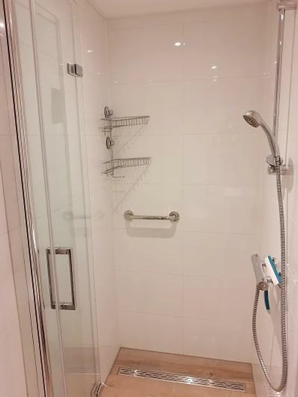 Die offene Küche ist komplett ausgestattet mit Gasherd, Backofen, Wasserkocher, Sandwichmaschine und Kaffeemaschine.Sanitär