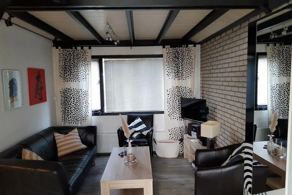 Das Wohnzimmer hat eine Essecke und eine gemütliche Sitzecke mit Fernseher (mit Kabelanschluss für deutsche und niederländische Sender). Die Unterkunft wird über eine Zentralheizung beheizt. Vom Wohnzimmer aus erreichen Sie den ersten Stock über eine Treppe. Durch die Schiebetüren im Wohnzimmer kommen Sie in den geräumigen Hintergarten.Küche