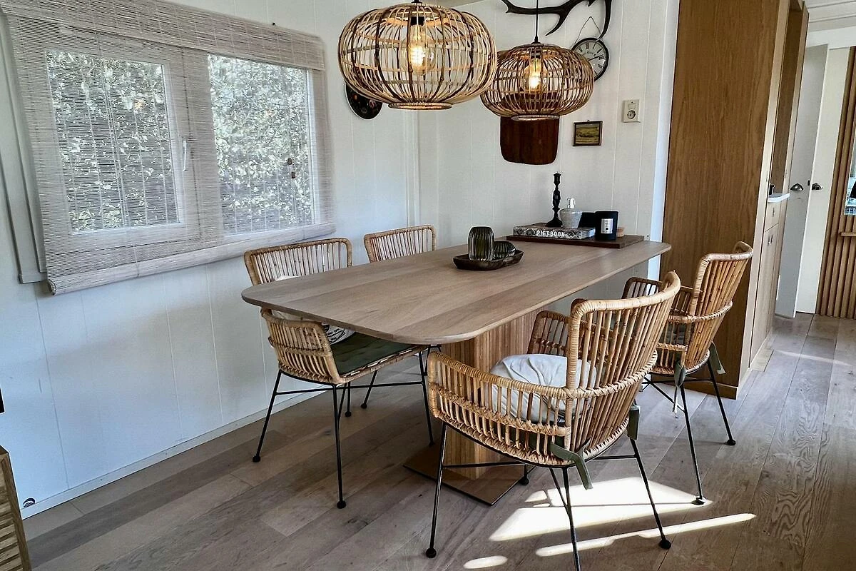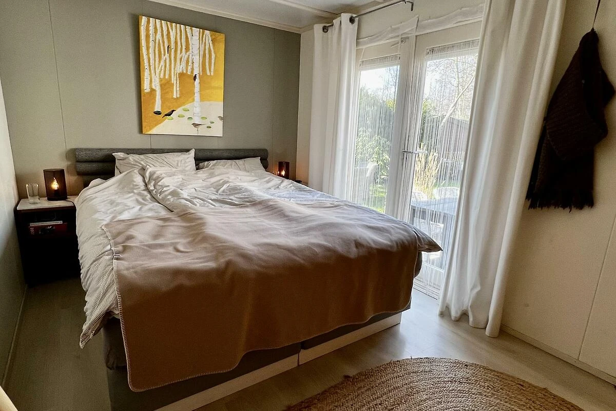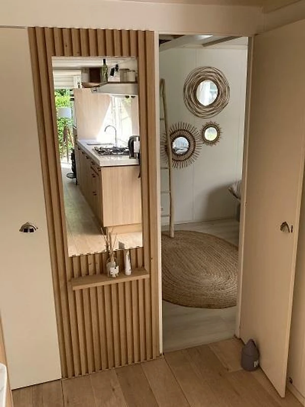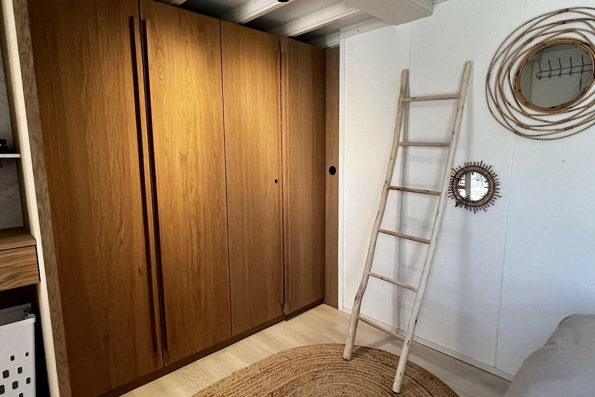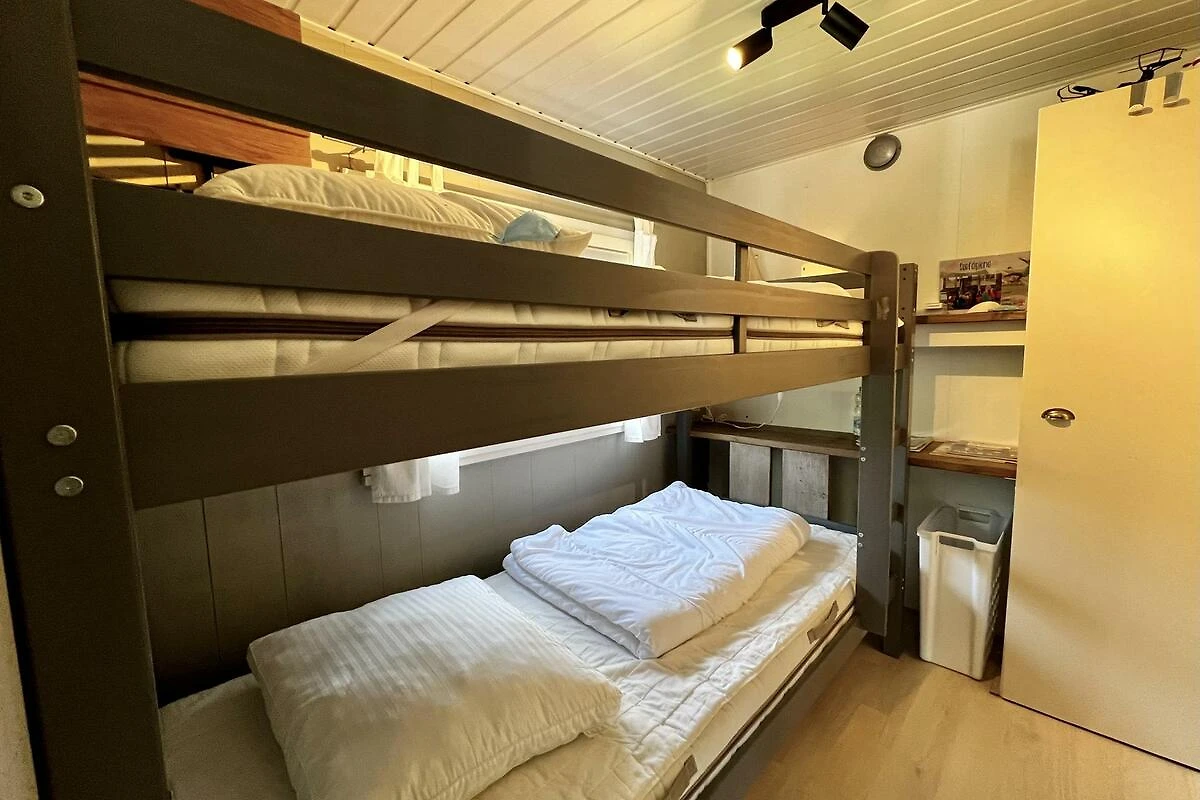 SchlafräumeDas geräumige Hauptschlafzimmer hat ein Doppelbett von 160 x 200 cm mit Einzelbettdecken. Für Ihre Kleidung gibt es einen geräumigen Kleiderschrank. Vom Schlafzimmer aus haben Sie direkten Zugang zur überdachten Terrasse.Das zweite Schlafzimmer hat ein Etagenbett (90 x 200 cm). Auch hier gibt es einen Kleiderschrank.