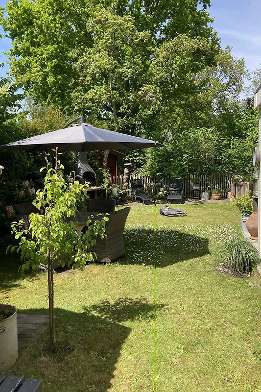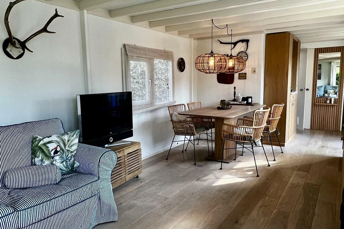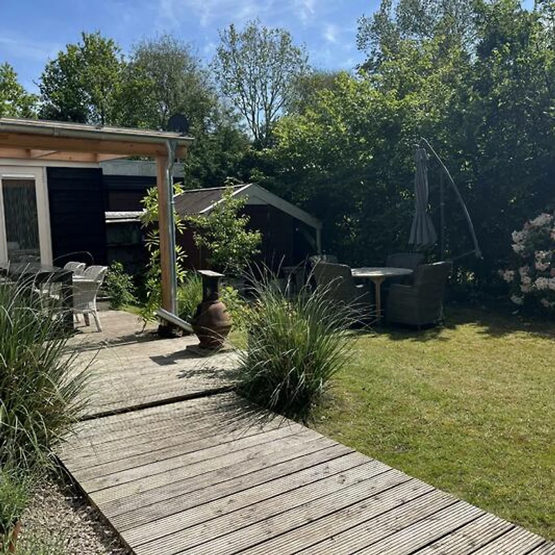 Terrasse-GartenVom Chalet aus gelangen Sie direkt auf die überdachte Terrasse. Der schöne Garten mit Rasenfläche sorgt für einen ungestörten Urlaub. Es gibt mehrere Sitzbereiche, in denen es herrlich ist. Im Schuppen können Sie Ihre mitgebrachten Fahrräder unterstellen. Den Gästen stehen verschiedene Spiele im Freien zur Verfügung. Das Chalet befindet sich in der Nähe des Spielplatzes, ideal für Kinder.