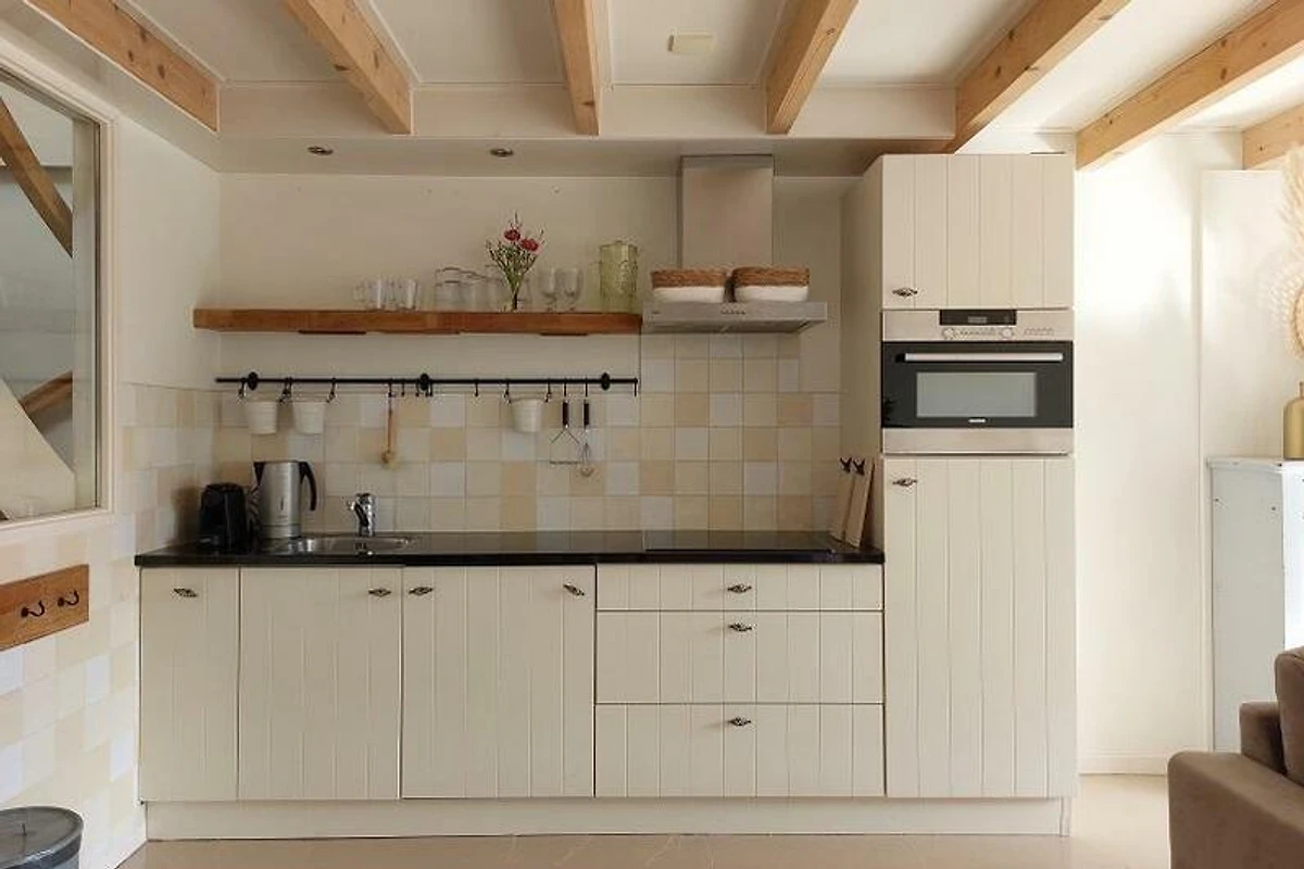 Die moderne und gut ausgestattete Küche verfügt über zahlreiche Küchengeräte. Es gibt einen Geschirrspüler, einen Backofen, eine Mikrowelle, eine Nespresso-Kaffeemaschine, einen Wasserkocher, einen Kühlschrank mit Gefrierfach, einen Induktionsherd, ausreichend Besteck und ein grosszügiges Tafelservice.