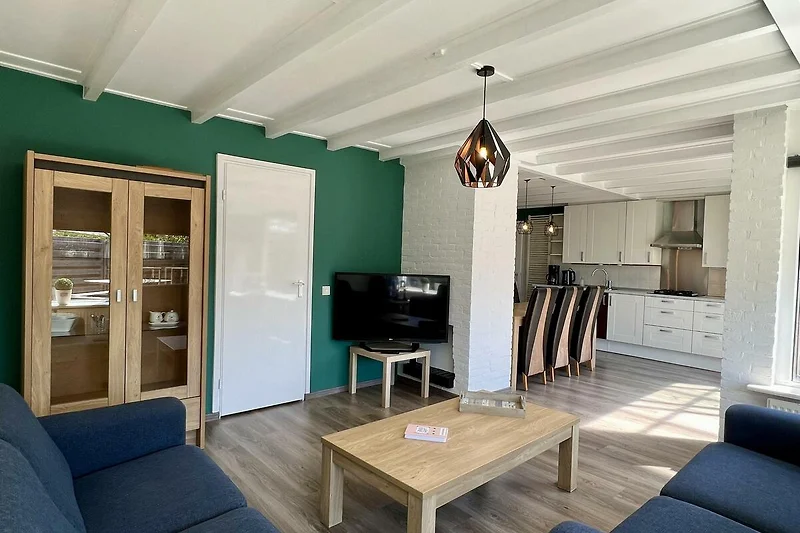Das Wohnzimmer mit offener Küche, TV mit digitalem Kabelempfang, kostenlosem WIFI, DVD-Player und einem Radio. Die helle, offene Küche ist mit Kochfeld, Dunstabzugshaube, Geschirrspüler, Mikrowelle, Grillofen, Kühl- und Gefrierschrank, Kaffeemaschine, Toaster und Wasserkocher ausgestattet. Alle Räume werden über eine Zentralheizung beheizt.