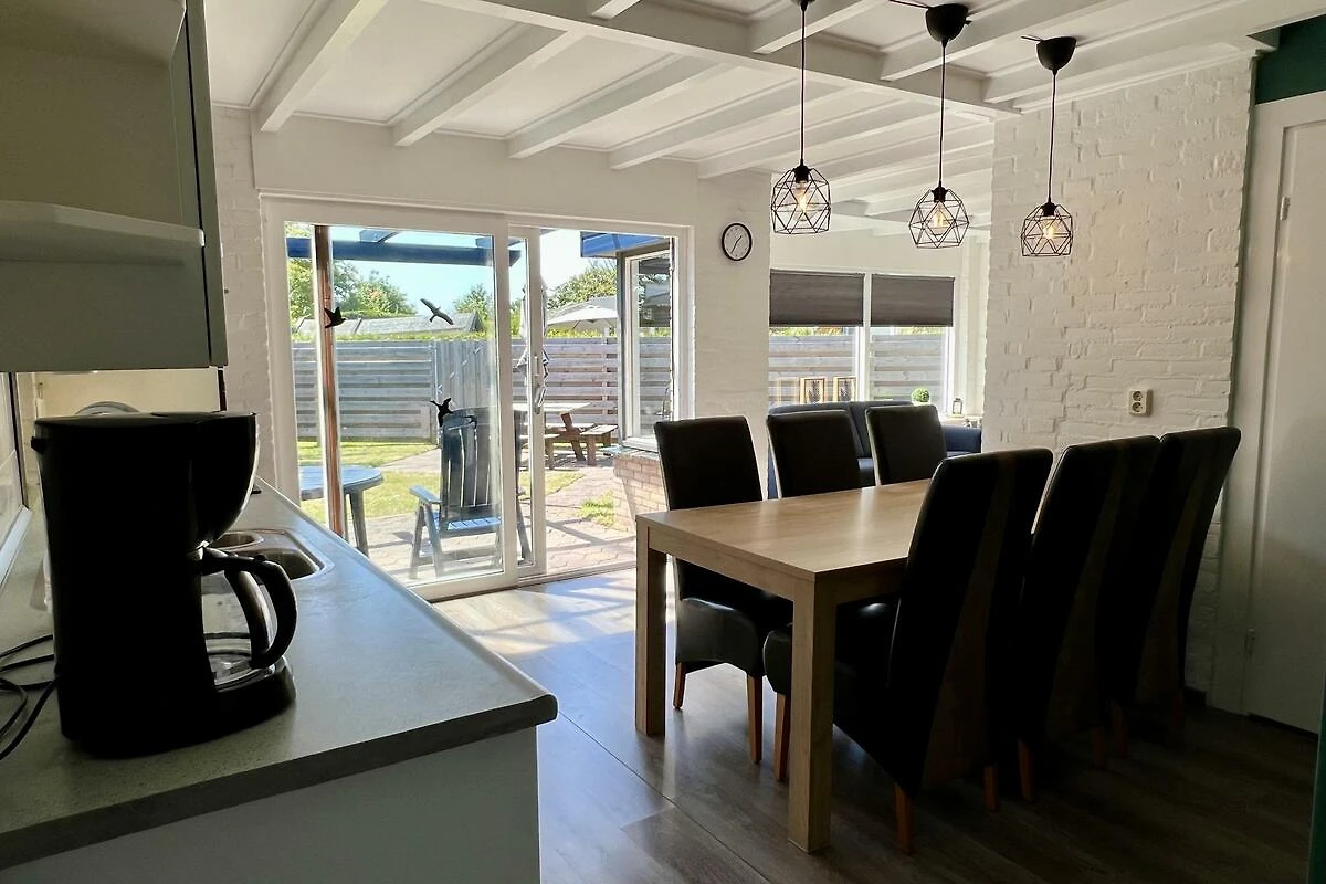 An einem sonnigen Ort, direkt am Spielplatz, liegt dieser freistehende Backsteinbungalow mit Innenraum und einem grossen, umzäunten Garten mit Terrasse nach Südwesten. Es gibt einen Parkplatz neben dem Bungalow.