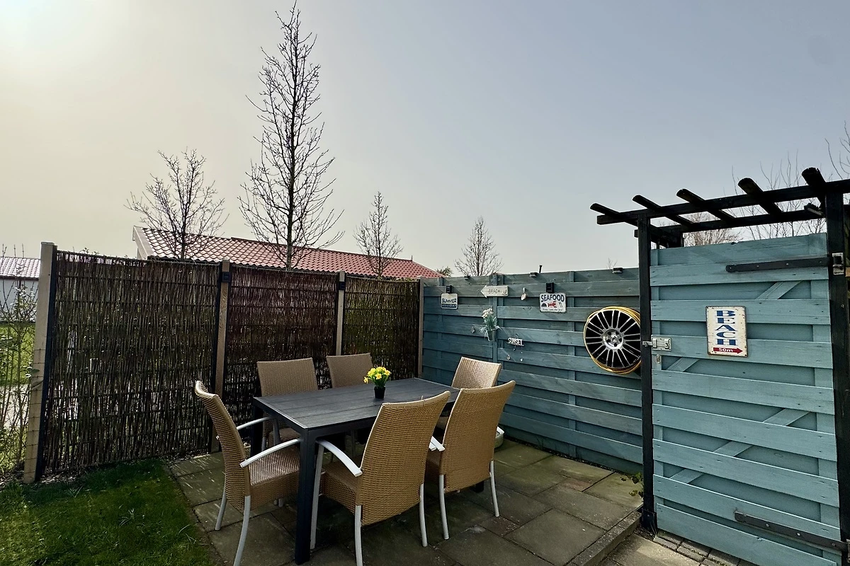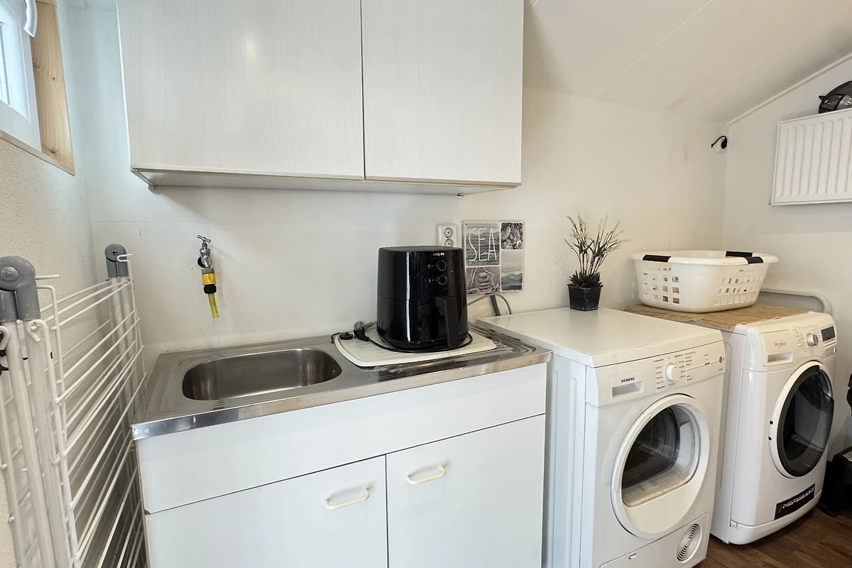 Umzäunter Garten und TerrasseVom Flur aus haben Sie Zugang zu einem Abstellraum, in dem eine Waschmaschine, ein Wäschetrockner, ein Wäscheständer und eine Heissluftfritteuse zur Verfügung stehen. Der Garten und der Wintergarten sind durch Schiebetüren vom Wohnzimmer aus zugänglich. Der Wintergarten ist zu Beginn des Jahres ein guter Ort, um sich aufzuhalten. Sowohl der Garten als auch der Wintergarten sind mit komfortablen Gartenmöbeln ausgestattet. Der Garten hat einen schönen Rasen, eine Wäschespinne und ist vollständig (und hoch) eingezäunt und auf 2 Seiten über ein Tor zugänglich. Hier können Ihre kleinen Kinder oder Ihr Hund sicher spielen.