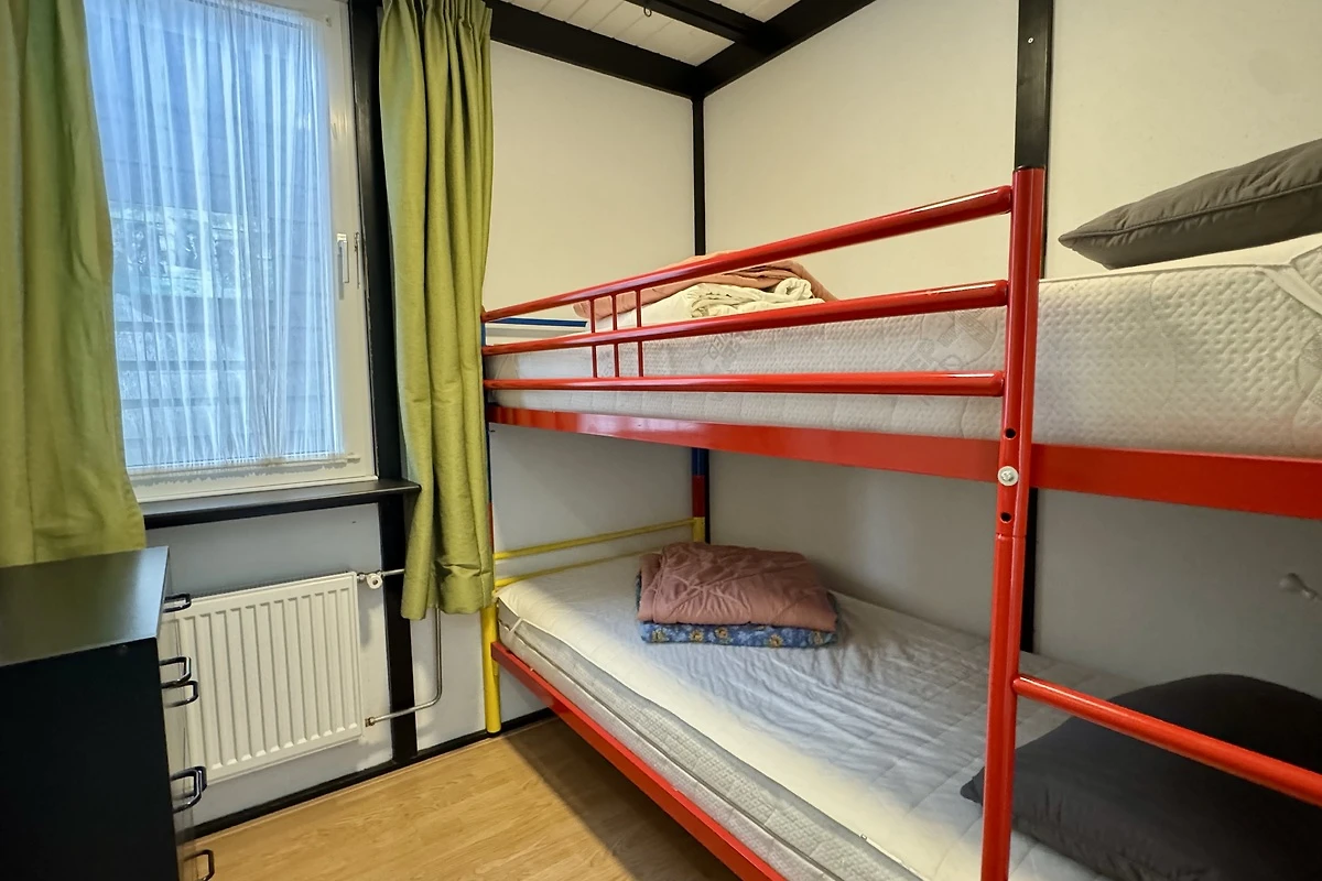 Zwei SchlafzimmerDie Unterkunft hat 2 Schlafzimmer, ein geräumiges Schlafzimmer mit einem Doppelbett (160 x 200 cm, Einzeldeckbetten) und viel Schrankraum und ein Schlafzimmer mit einem Etagenbett.