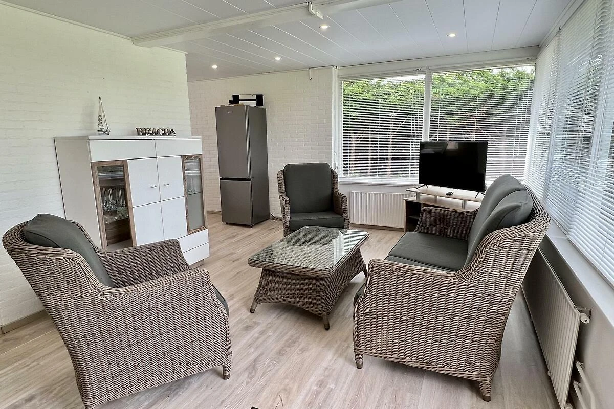 Das Wohnzimmer ist mit einem Rattansofa und 2 Rattan Sessel ausgestattet. Es gibt Kabel- und SATTV (NL + DU Sender) und einen DVD-Spieler. Der gesamte Bungalow verfügt über eine Zentralheizung.