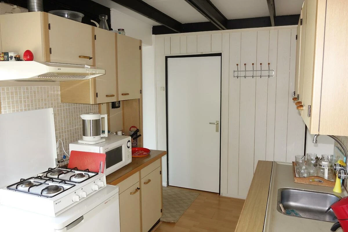 Gemütliches Wohnzimmer mit Sitzecke, Kabel Fernseher und Radio. Offene Küche mit Gasherd, Mikrowelle, Kühschrank mit Gefrierfach, Kaffemaschine (plus Senseo) und Waschmaschine