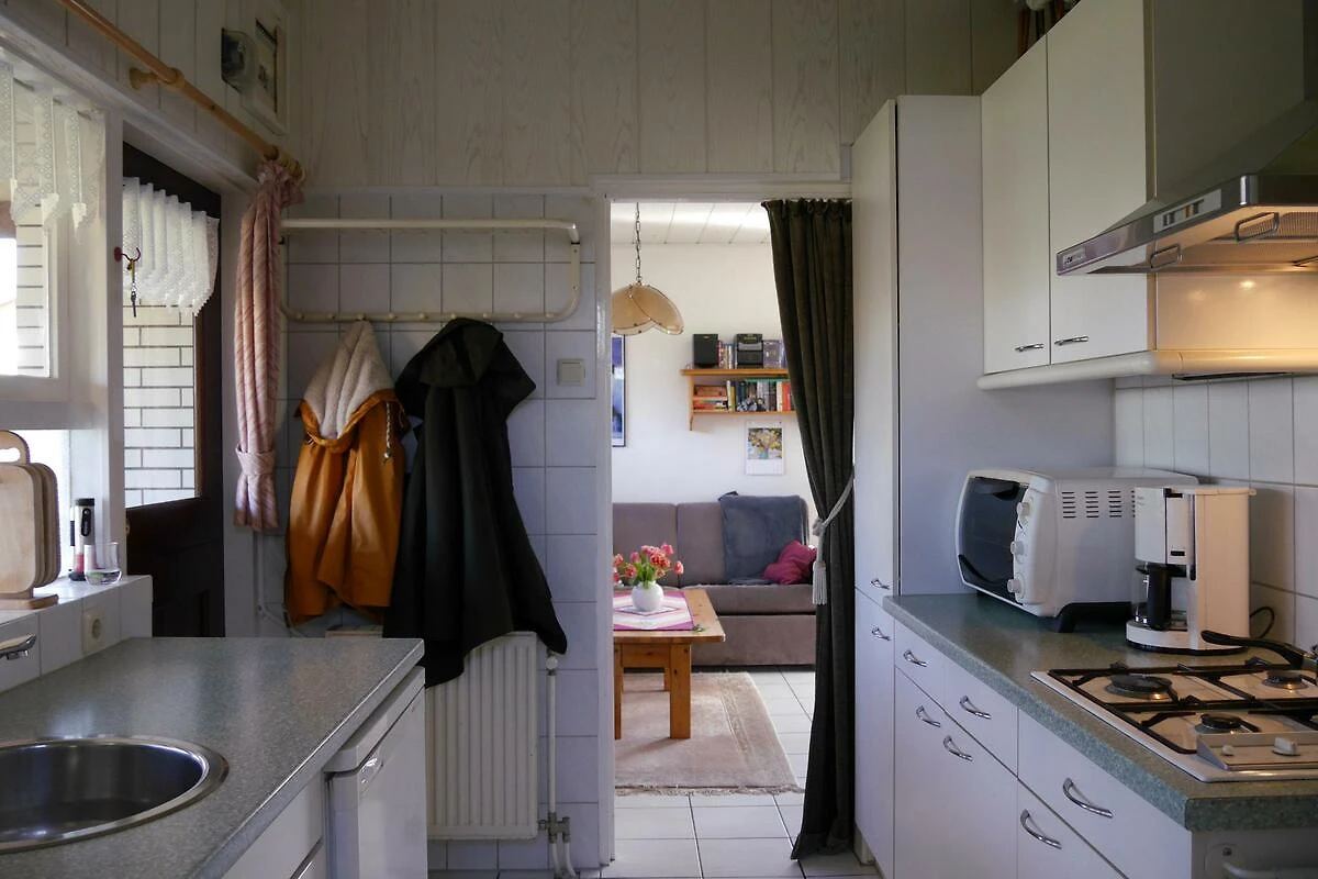 Das Wohnzimmer grenzt an die Küche an. Hier können Sie sich auf der bequemen Couch ausbreiten. Diese verwandelt sich bei Bedarf auch zu einer weiteren Schlafmöglichkeit. Ausserdem befindet sich hier der erweiterbare Esstisch mit Platz für bis zu 6 Personen. Der Fernseher ist mit einigen Fernsehkanälen ausgestattet als auch mit einem Blu-ray-Player verbunden. Sollten Sie sich für einen Aufenthalt in den kalten Jahreszeiten entscheiden, hilft Ihnen die Zentralheizung dabei, warm zu bleiben.Küche