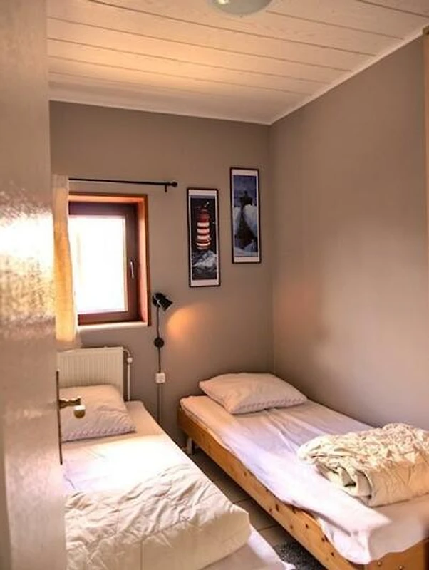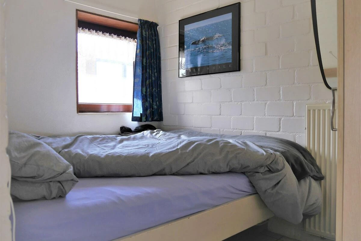 Das Haus ist mit zwei Schlafzimmern ausgestattet. Das grosse Schlafzimmer geht vom Wohnzimmer ab und ist mit einem Doppelbett und einer durchgängigen Matratze ausgestattet (160 x 200 cm). Das kleine Schlafzimmer geht von der Küche ab und ist mit zwei Einzelbetten ausgestattet (je 80 x 200 cm). Diese können am Gestell zu einem grossen Bett zusammengebunden werden.Beide Zimmer bieten reichlich Schrankfläche zum Verstauen Ihres Gepäcks.Bad